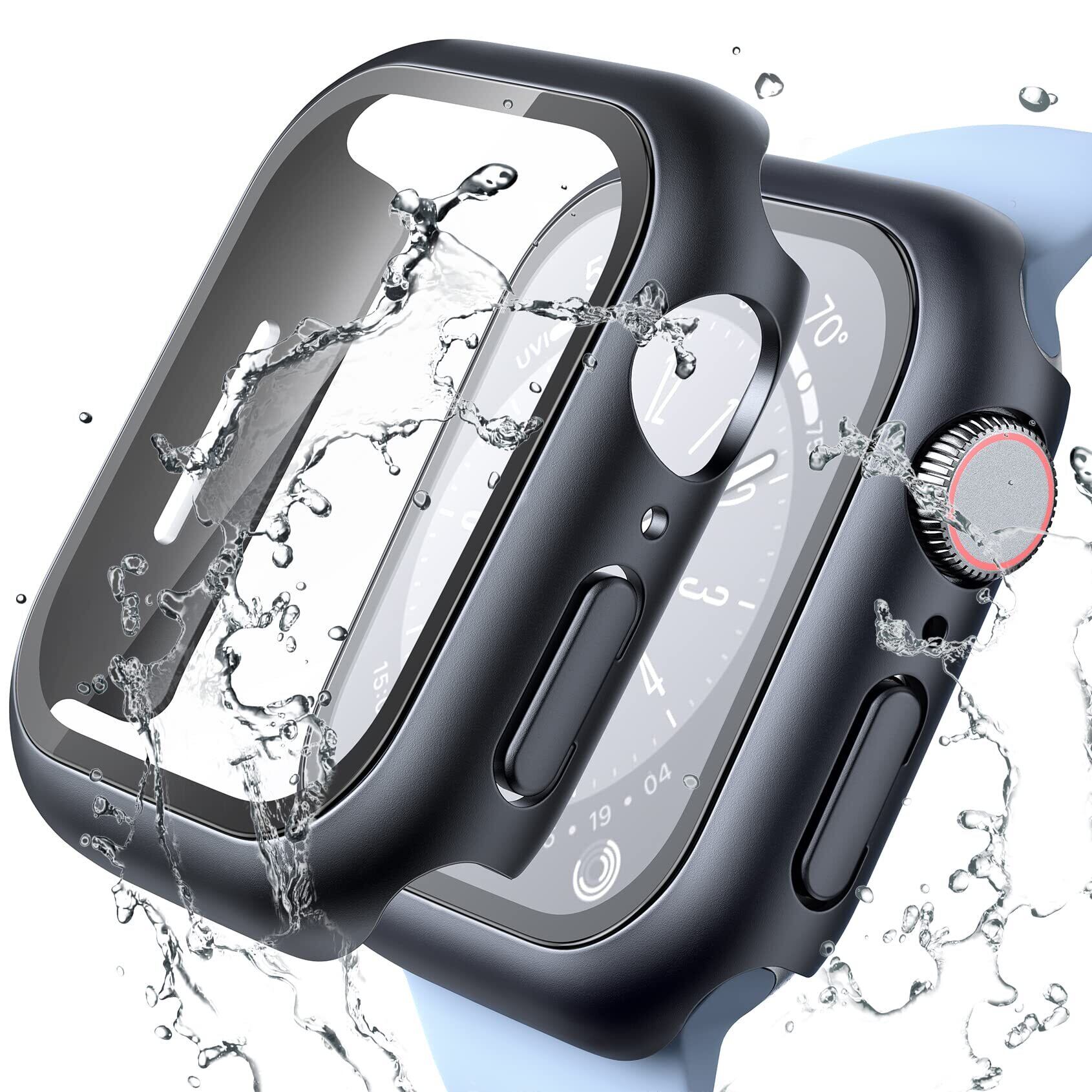 【2セット】 2023新登場 Lamicall Apple Watch 防水 保護 ケース : Apple Watch Series 9/8/7 9H強化ガラス 画面カバー 保護カバー iWatch 保護ケース アップルウォッチ9 一体型 全面保護 薄型 装着簡単 高透過率 指紋防止 傷防止 衝撃吸収 Apple Watch Series 9 Series 8(41mm) に対応 - ブラック