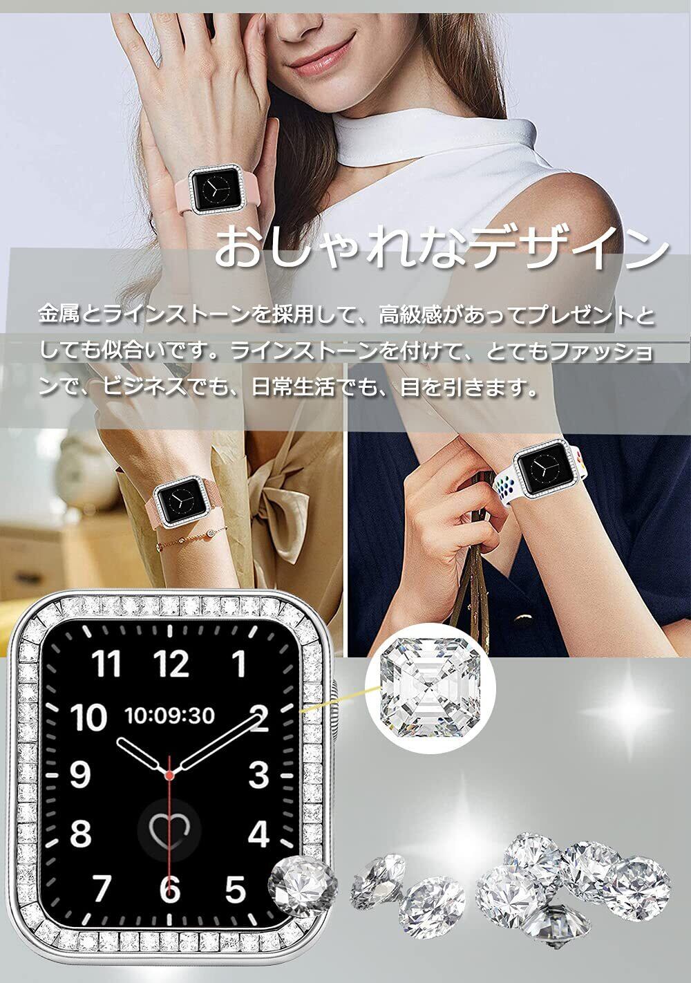 【高级な素材|高級感】金属材料を採用して、放熱性に優れ、質感、手触りが一番です。変色を防ぎ、汗も防ぎます。アップルウォッチ 1/2/3/4/5/6/SE/7/8をしっかり保護します。金属とラインストーンを合わせて、高級感が溢れます。