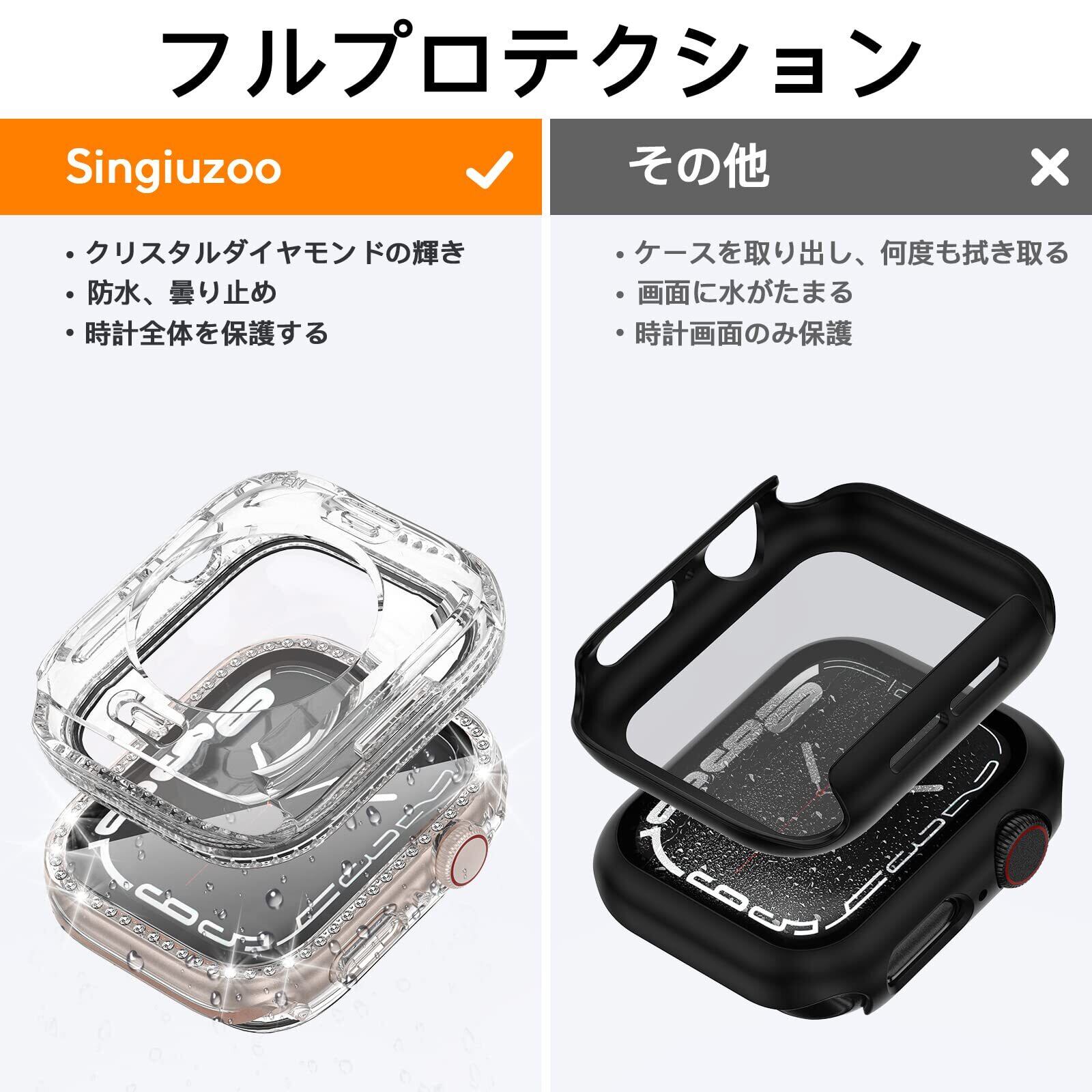 「改良版・防水仕様」:Apple Watchケースの防水機能を新たにアップグレードしました。強化ガラスフィルムの底部には防水ソフトゴムシールリングが内蔵されており、水がガラスフィルムと本体の間に入るのを防ぎ、日常の水に触れることが原因で画面のタップが効かなくなる問題を回避します。プールや海などの水中で時計を使用する際は、Apple Watchの説明に従って、スキューバダイビング、ウェイクボードなどの高水圧や潜水深度が規定を超える活動を行わないでください。