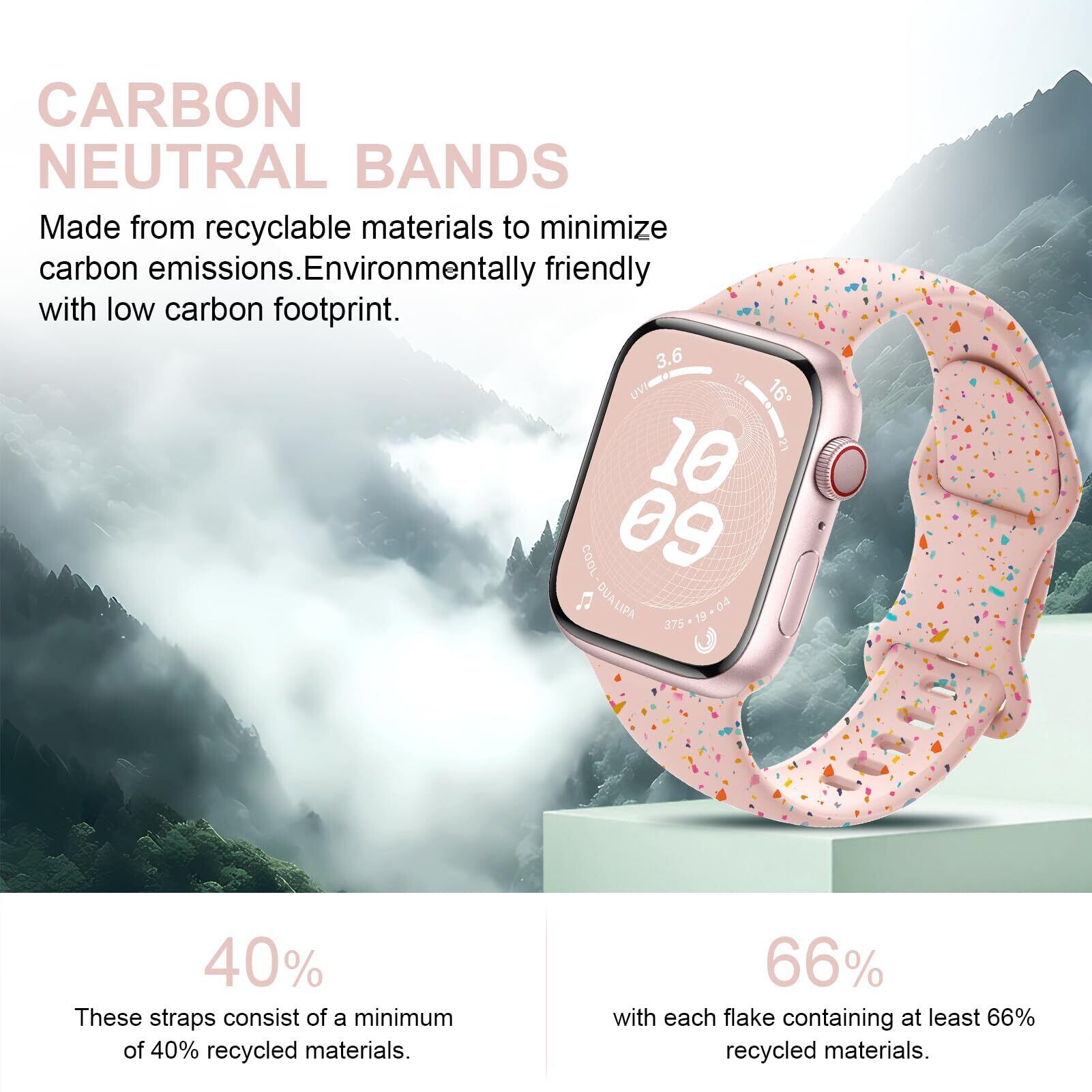 【環境に優しい】コンパチブル apple watch シリコンバンドは、持続可能性の精神に従い、リサイクル素材で作られています。少なくとも 32% の再生シリコンが含まれており、紙吹雪には少なくとも 66% の再生シリコンが含まれています。 環境への悪影響を効果的に軽減し、低炭素で環境に優しい生活を促進します。