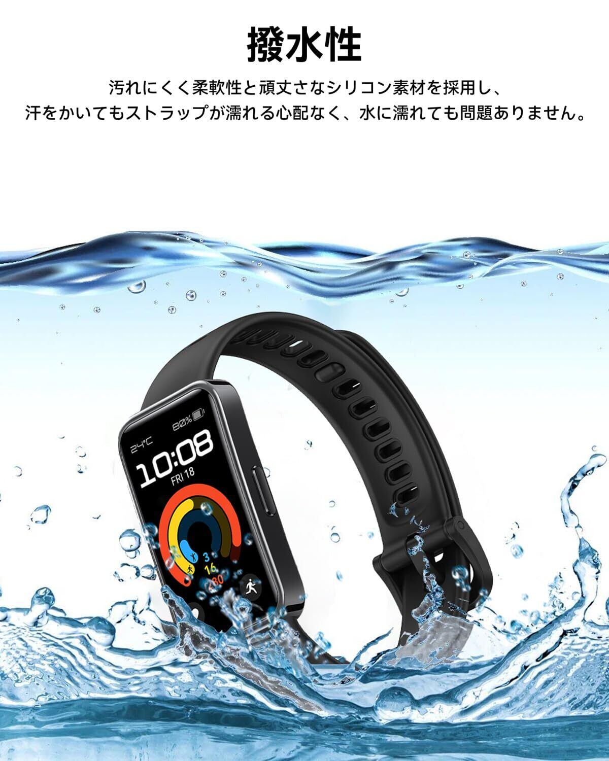 【防水・滑り止め】シリコン素材は防水性があるので、汗をかいてもストラップが濡れる心配なく、汗による不快感を軽減できます。水に濡れても問題ありません。