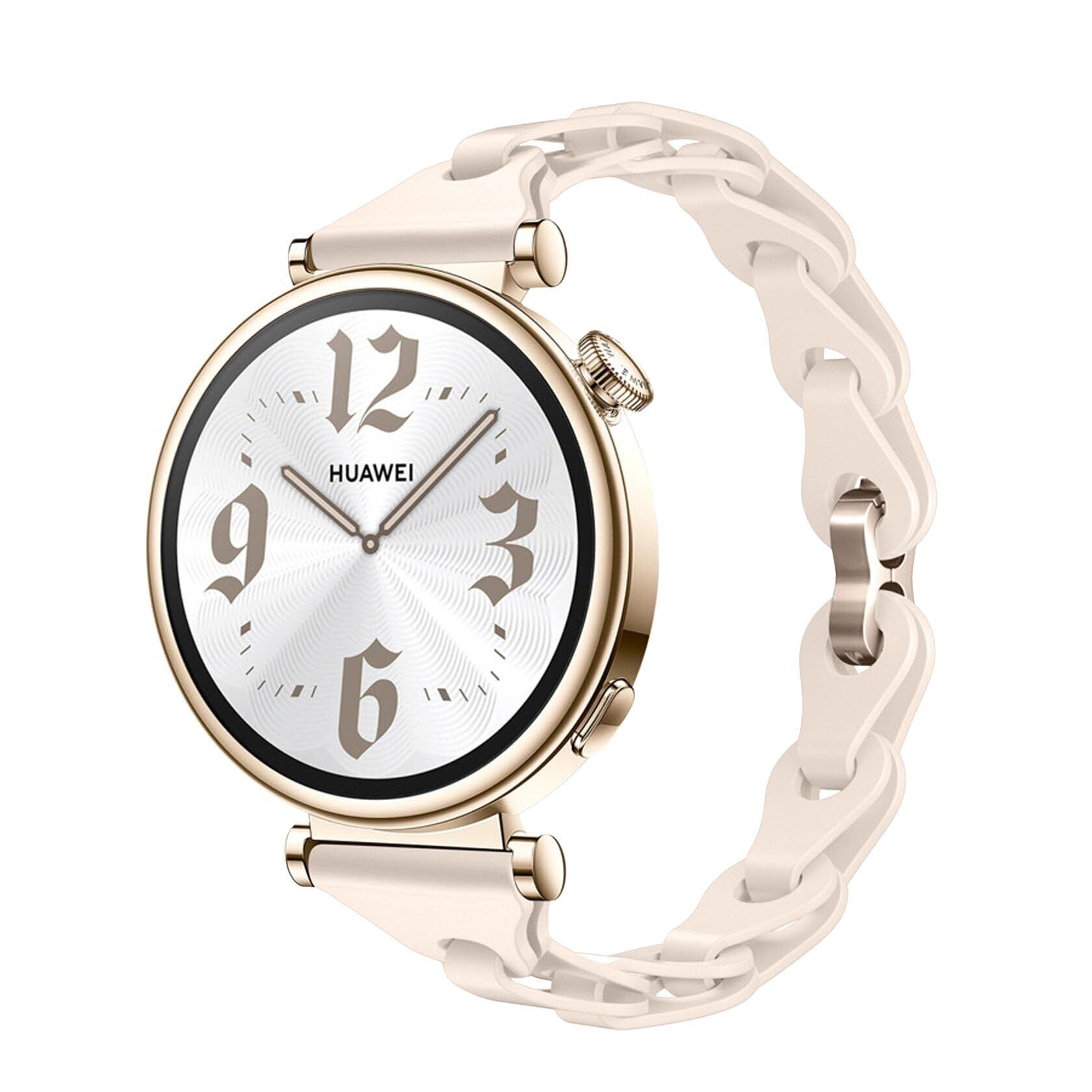 [Etsbaocy] 18MM バンド For Huawei Watch GT 4 41mm/Garmin Forerunner 265S/Forerunner 255S/Forerunner 255S Music 対応 交換バンド レザーチェーンベルト換えバンド 替えベルト 透かし編みデザイン 調節可能 交換用ストラップ Garmin Venu 2S 用ベルト - ホワイト