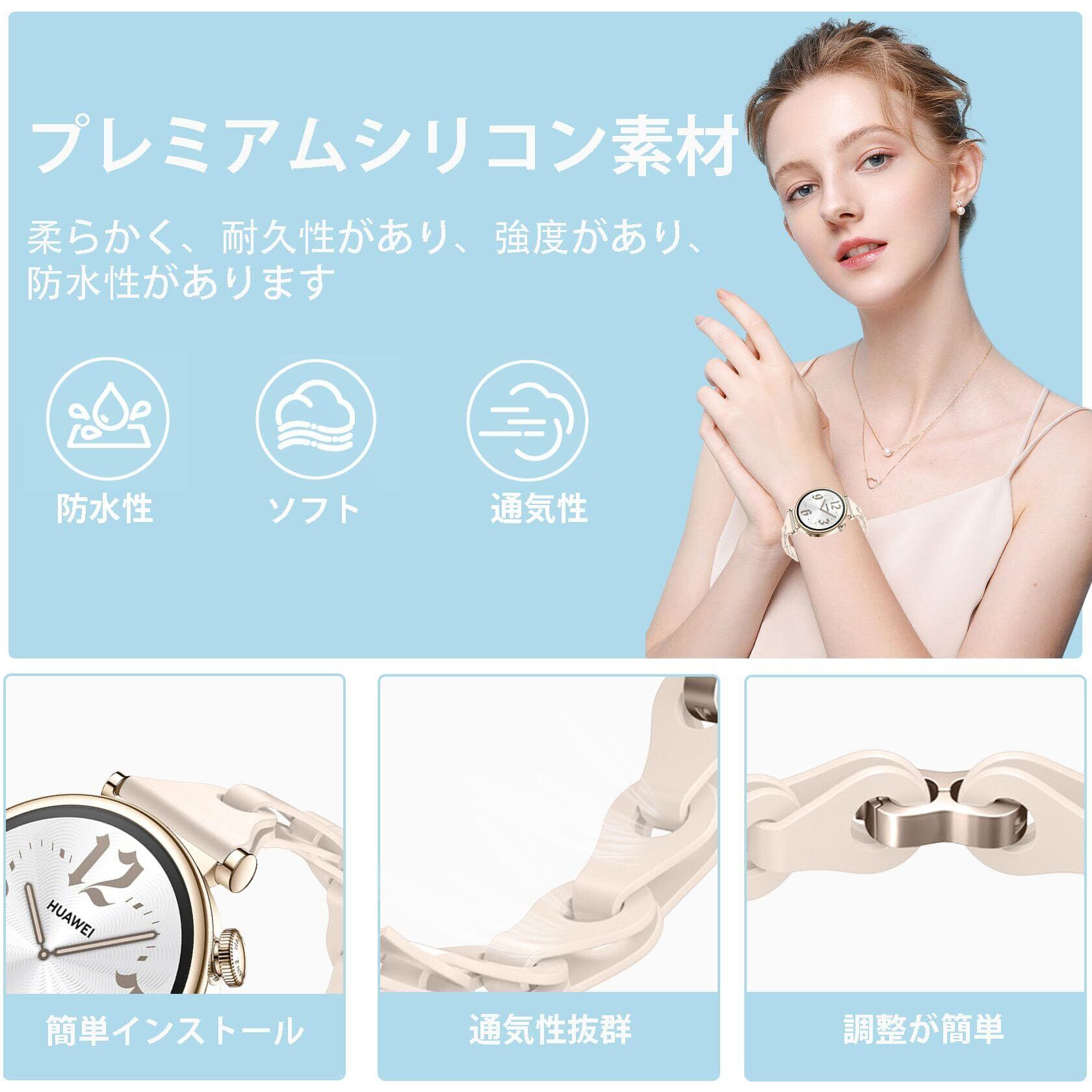 【通気性抜群】 バンドは多数の通気孔を設計されて、軽量化と通気性の向上に役立ちます。防水性、通気性は手首を乾燥感を維持でき、摩擦を抑えて安全に使います、運動時はもちろん、日常使用における長時間装着にも疲れないです。シリコンバンドは汚れたら水洗いも簡単です。透かし編みの外観デザイン、おしゃれな女性魅力を演出します。