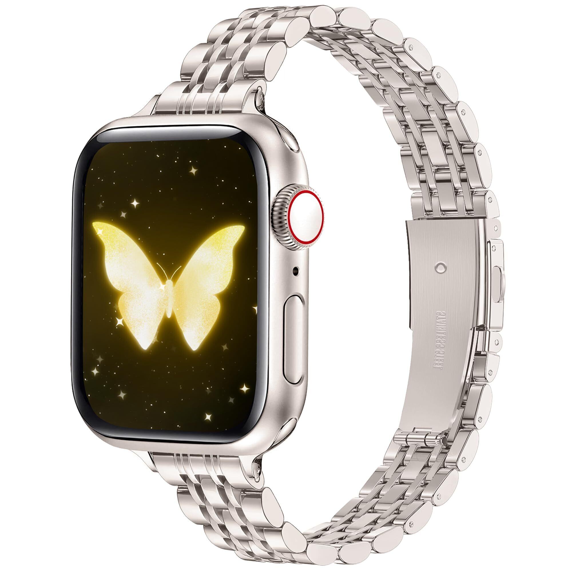 [SIBOYL] 人気細い対応アップルウォッチ バンド 41mm 40mm 38mm 42mm(Series10)、高級おしゃれiWatch バンド、コンパチブル可愛いApple Watch バンド ステンレス、対応簡単な調整のアップルウォッチ バンド レディース、対応Apple Watch SEバンド、対応Apple Watch 10バンド、互换Apple Watch Seバンド 9 8 7 6 5 4 3 2 1-スターライト