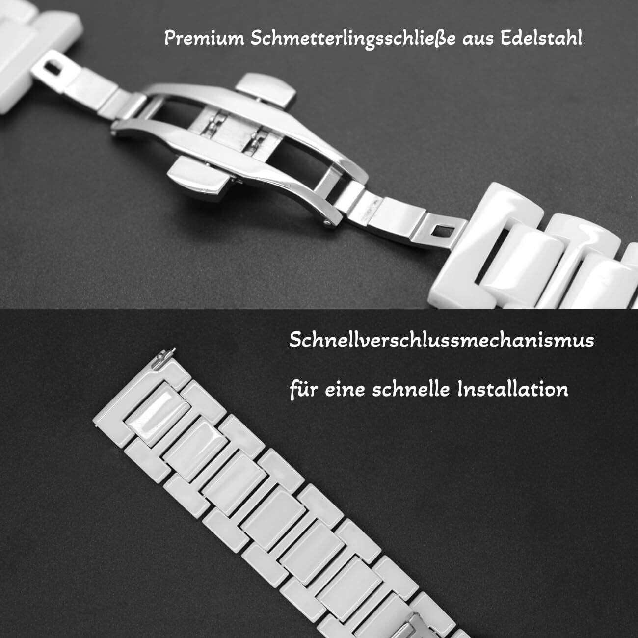 [Juntan] 20mm 22mm セラミック時計ベルトクイックリリース腕時計ステンレス蝶ボタン付き女性用男性ブレスレット
