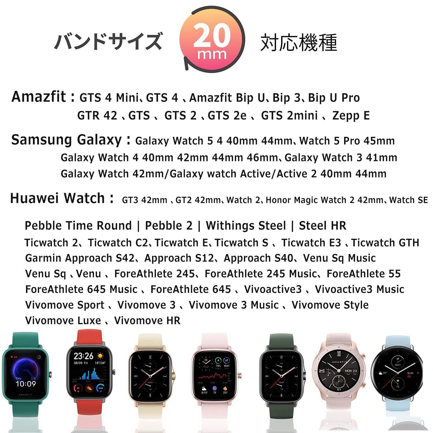 【対応モデル】:この時計バンドは幅20mm/22mmのバンドです、市販品のほとんどは全てのラグ幅が20mmのスマートウォッチやカジュアル腕時計に交換性があります。