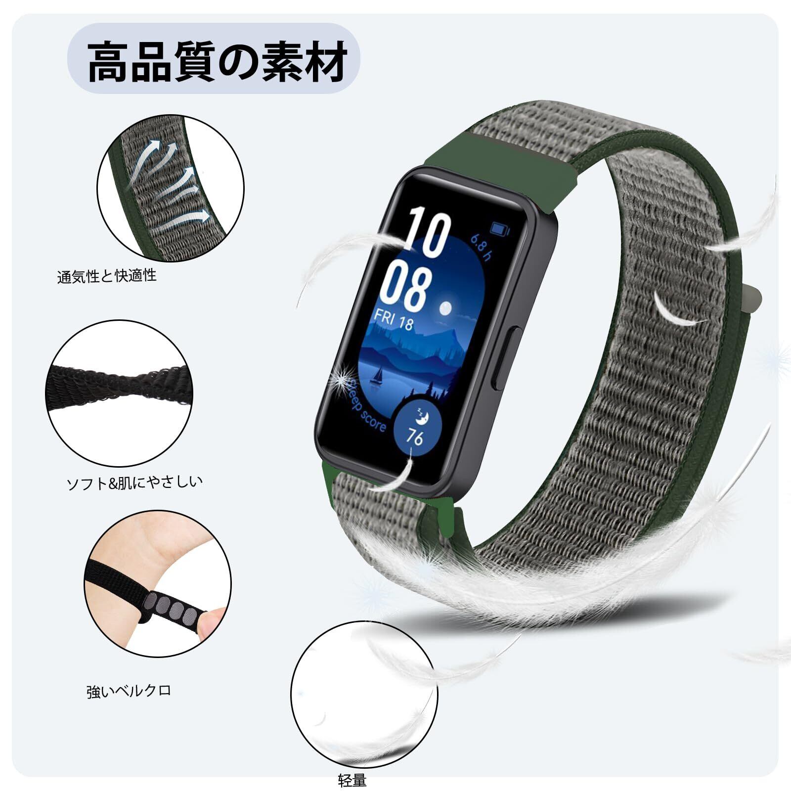 [LuFiYa] 交換バンド HUAWEI Band 9/HUAWEI Band 8 対応 交換ベルト ファーウェイ バンド9 いナイロン素材スポーツループベルト 脱着便利 軽量 柔らかい メンズ&レディース Huawei Band 9/Band 8 用 バンド (ダークグリーン)