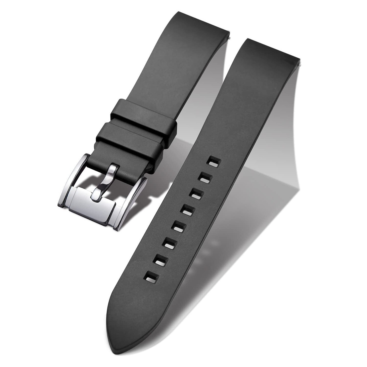 【高級素材】高性能フッ素ゴムを使用したこのシリコーン時計バンドは、一般的なシリコン素材よりも優れ耐摩耗性、耐油性、耐食性、抗酸化性を持ち、耐久性、柔軟性、快適さを実現しています。