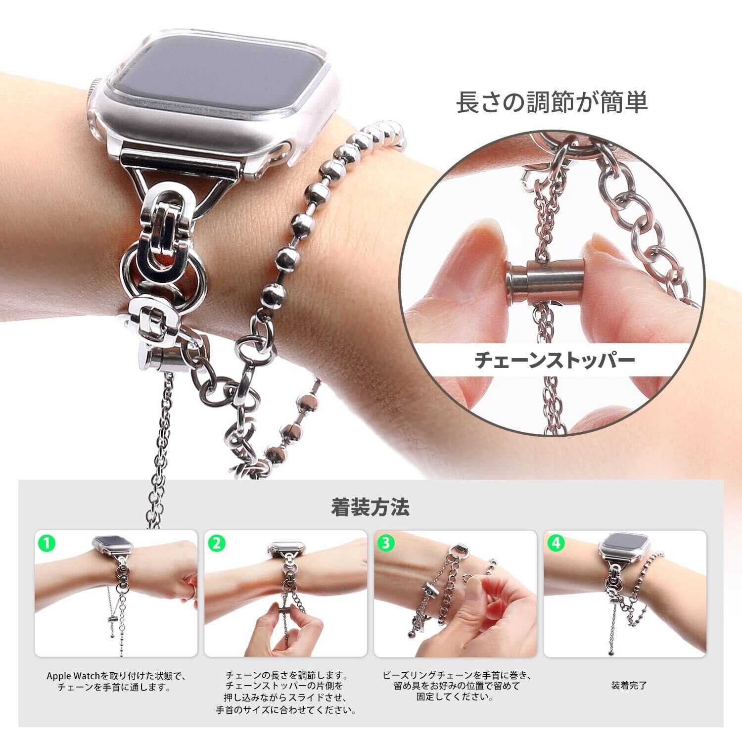 【Apple Watch専用ブレスレットバンド】細身のメタルベルトとビーズチェーンが特徴的な、アクセサリーのように楽しめるApple Watch専用バンドです