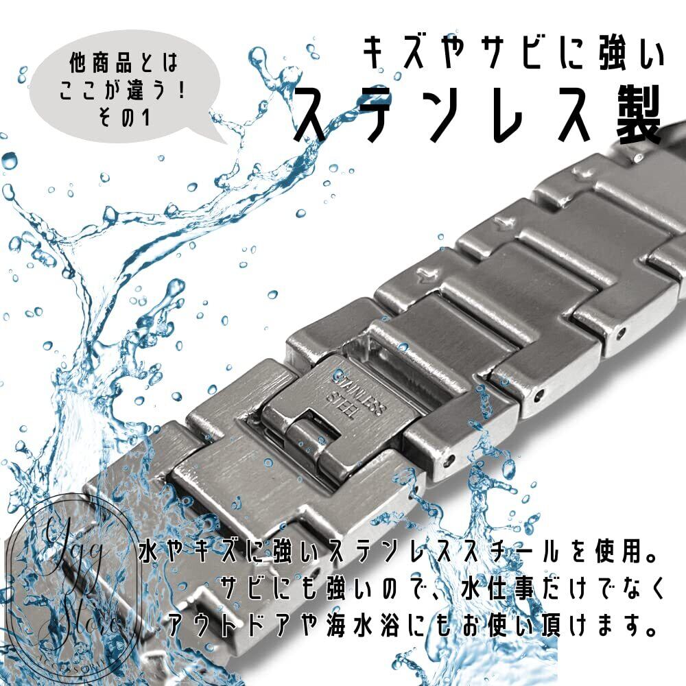 素材:ステンレス(刻印あり)汗や水にも強く錆びにくい、金属アレルギーの方も安心のステンレス製。手首側の留め具部分は「マットタイプ(艶なし加工)」を施してありますので、デスクワークでもキズがつきにくいのがポイント。