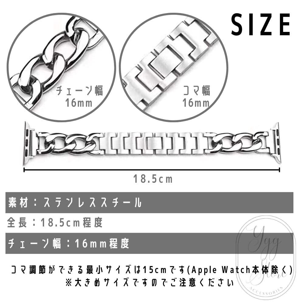 [YGGSTORE] Apple Watch ステンレス チェーン バンド ベルト 交換 互換 全シリーズ対応 40mm/41mm/42mm /44mm/45mm/46mm/49mm