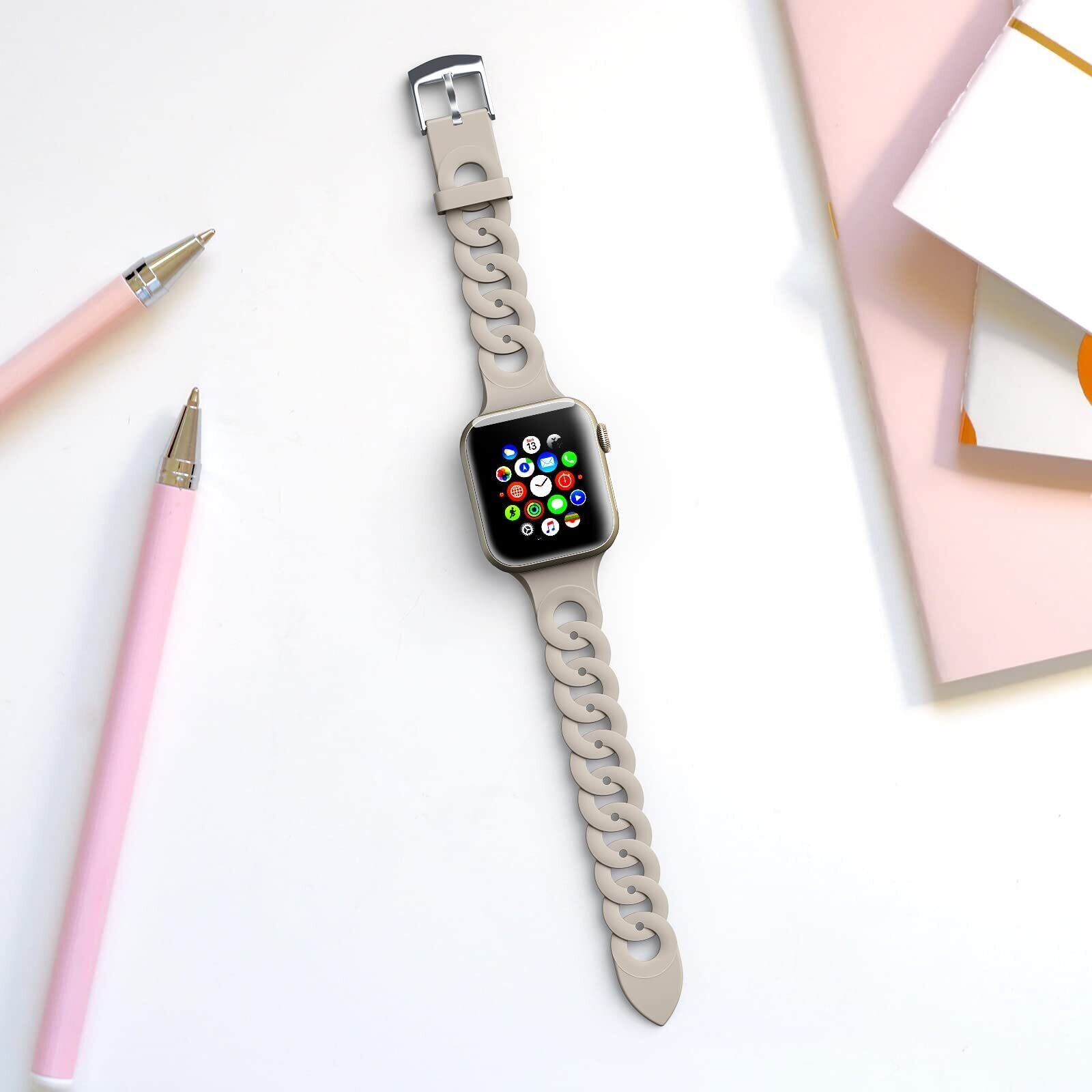 コンパチブル アップルウォッチ Apple Watch バンド46mm 38mm 40mm 41mm プリストバンドサークルチェーンデザインiWatch 10 9 8 SE 7 6 5 4 3 2 1柔らかいシリコン素材 防汗 細身 透气 おしゃれ スリムスポーツバンド(41mm 40mm 38mm 42mm(Series 10),スターライト)……