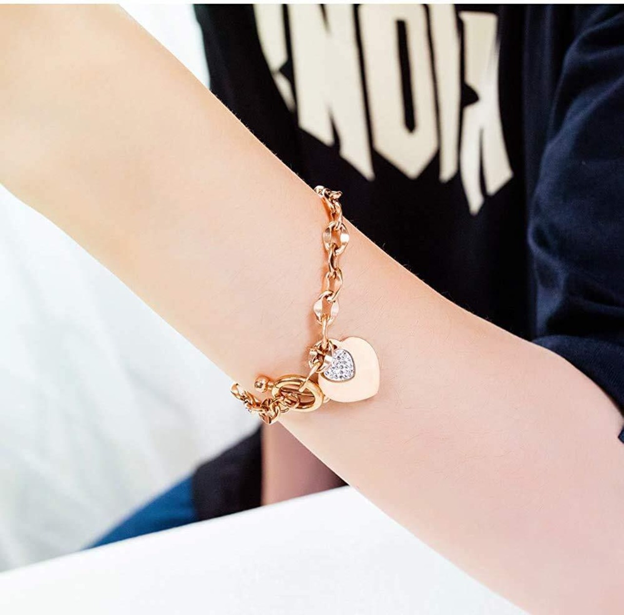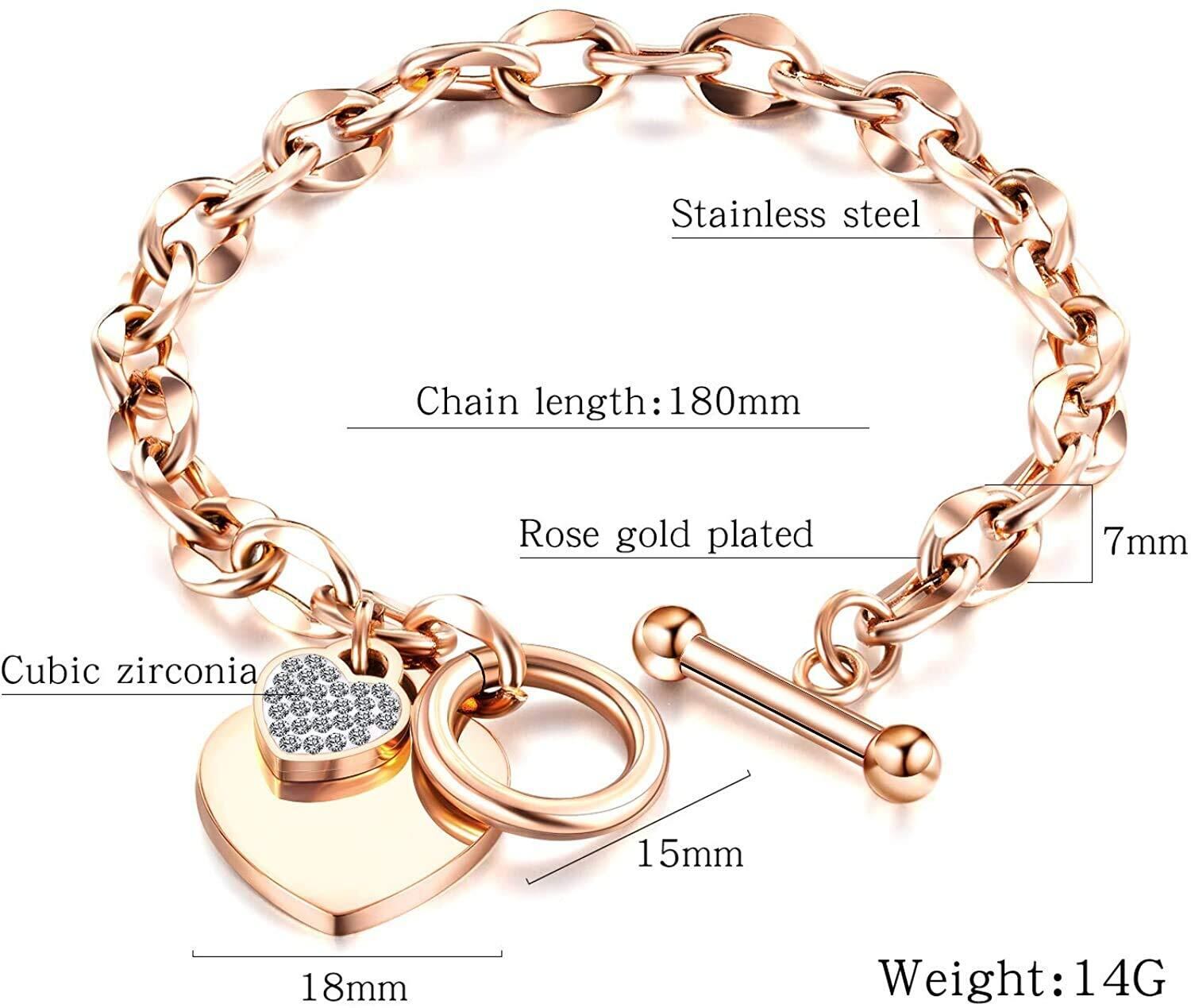 ハート ブレスレット ピンクゴールド【素材】:18K チタン【サイズ】:チェーン長さ:180mm【重量】:14g