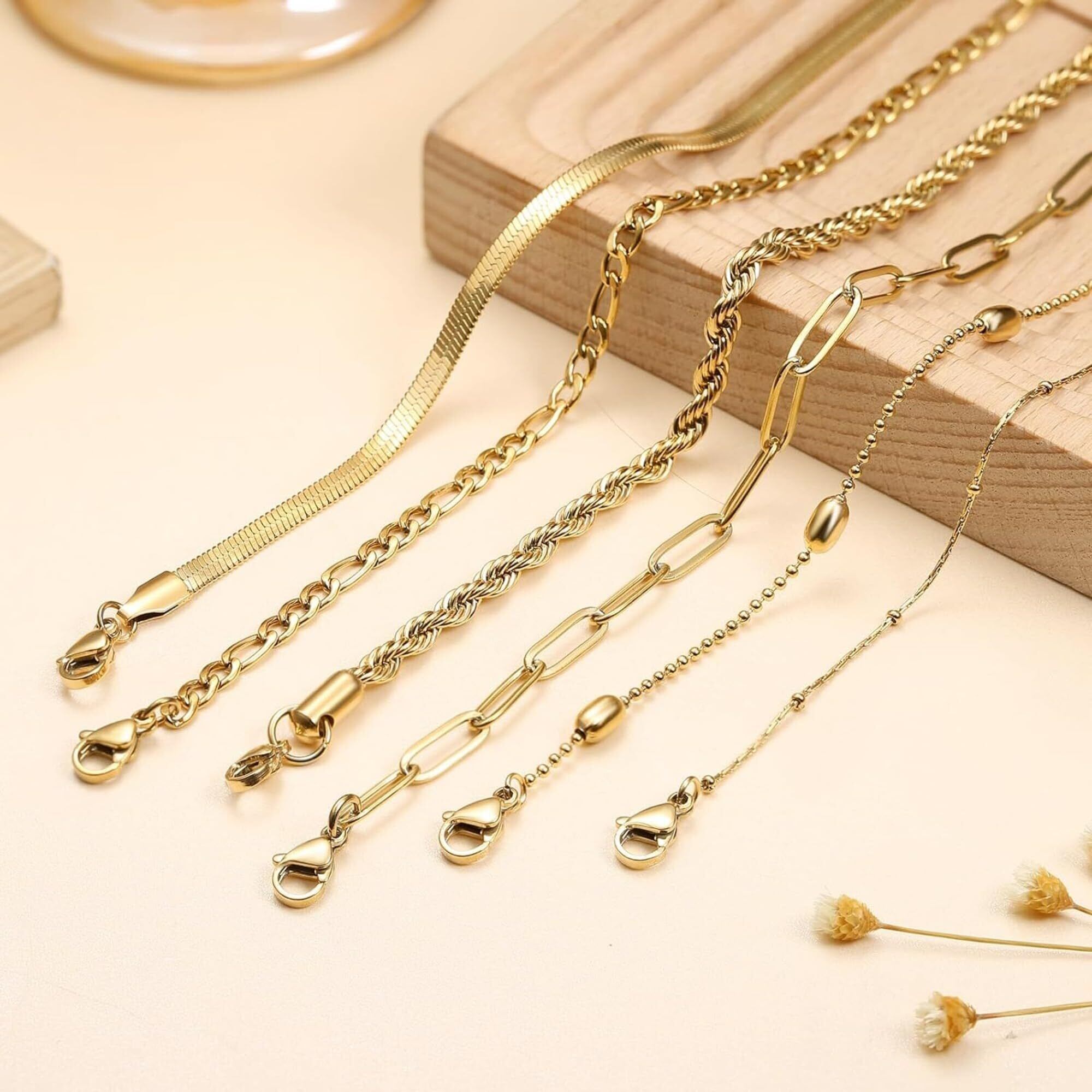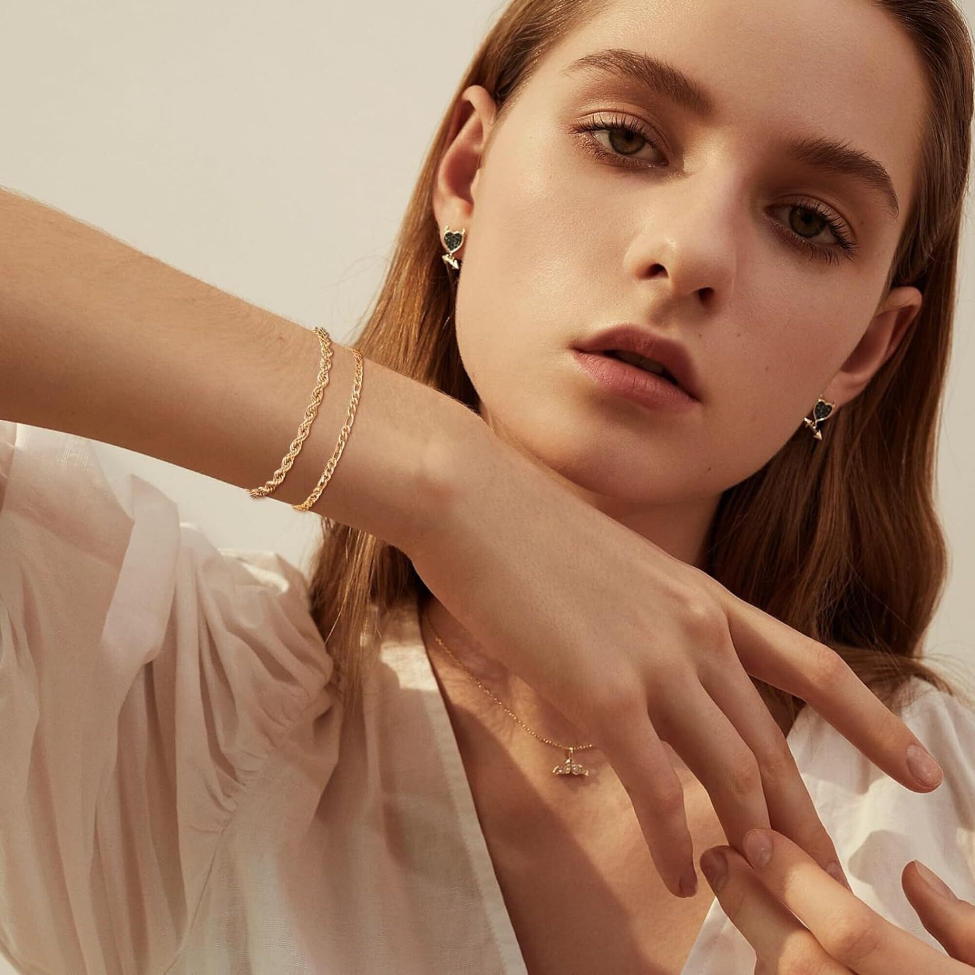 LOYALLOOK ブレスレット レディース 925 シルバー 14K 人気 6本 ゴールド ブレスレット 女性 ゴールド スタッキング ブレスレット ツイスト チェーン ブレスレット ファッション ゴールド ブレスレットジュエリー
