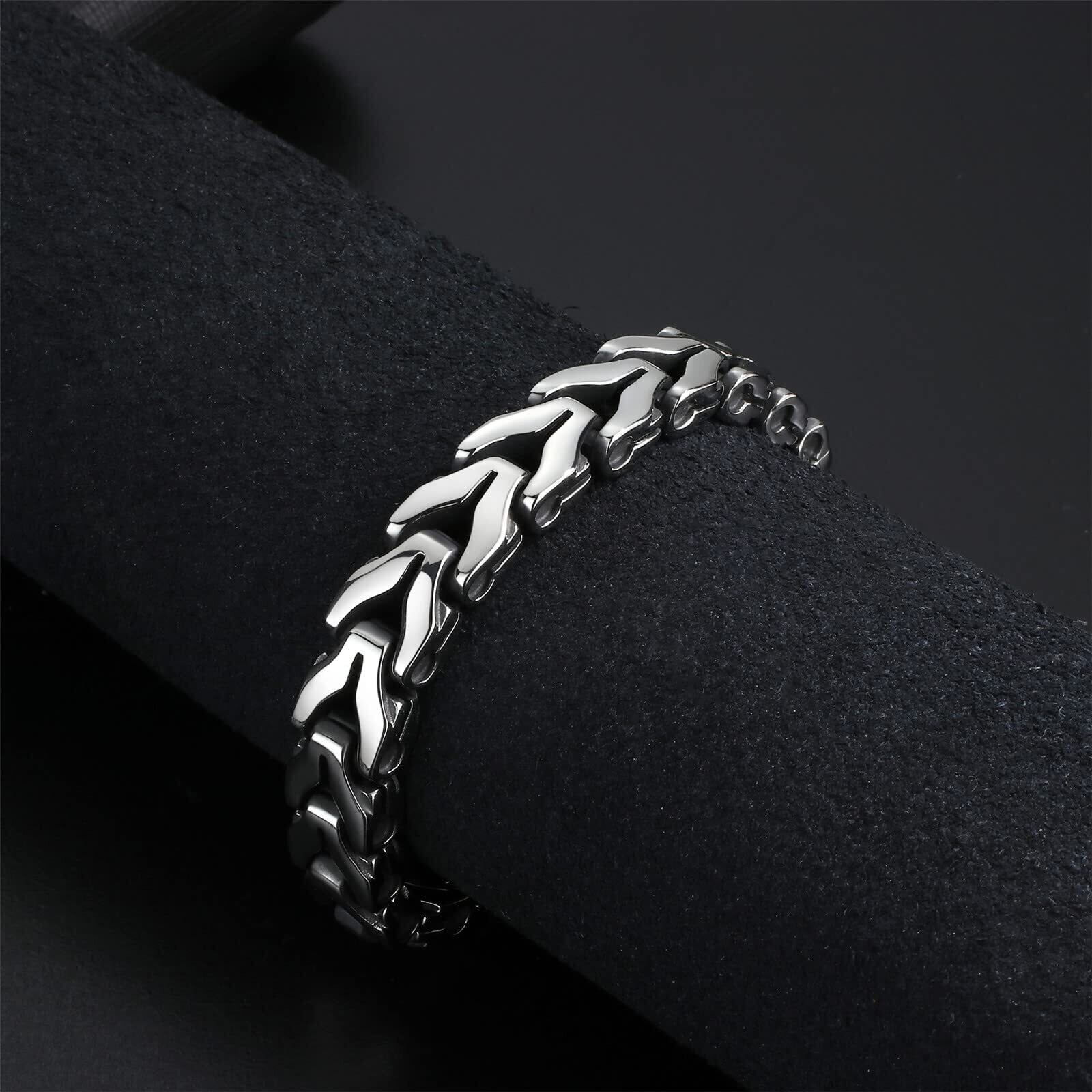 Flongo メンズブレスレット 双頭蛇 ヘビ モチーフ 腕輪 316Lステンレスチェーン 竜の頭 バングル アクセサリー 復古 ヴィンテージ パンク ヒップホップ かっこいい 個性 可調整 彼氏へ バレンタインデー クリスマス 誕生日 記念日 復活祭 ハロウィン プレゼント ギフト袋付き(シルバー)