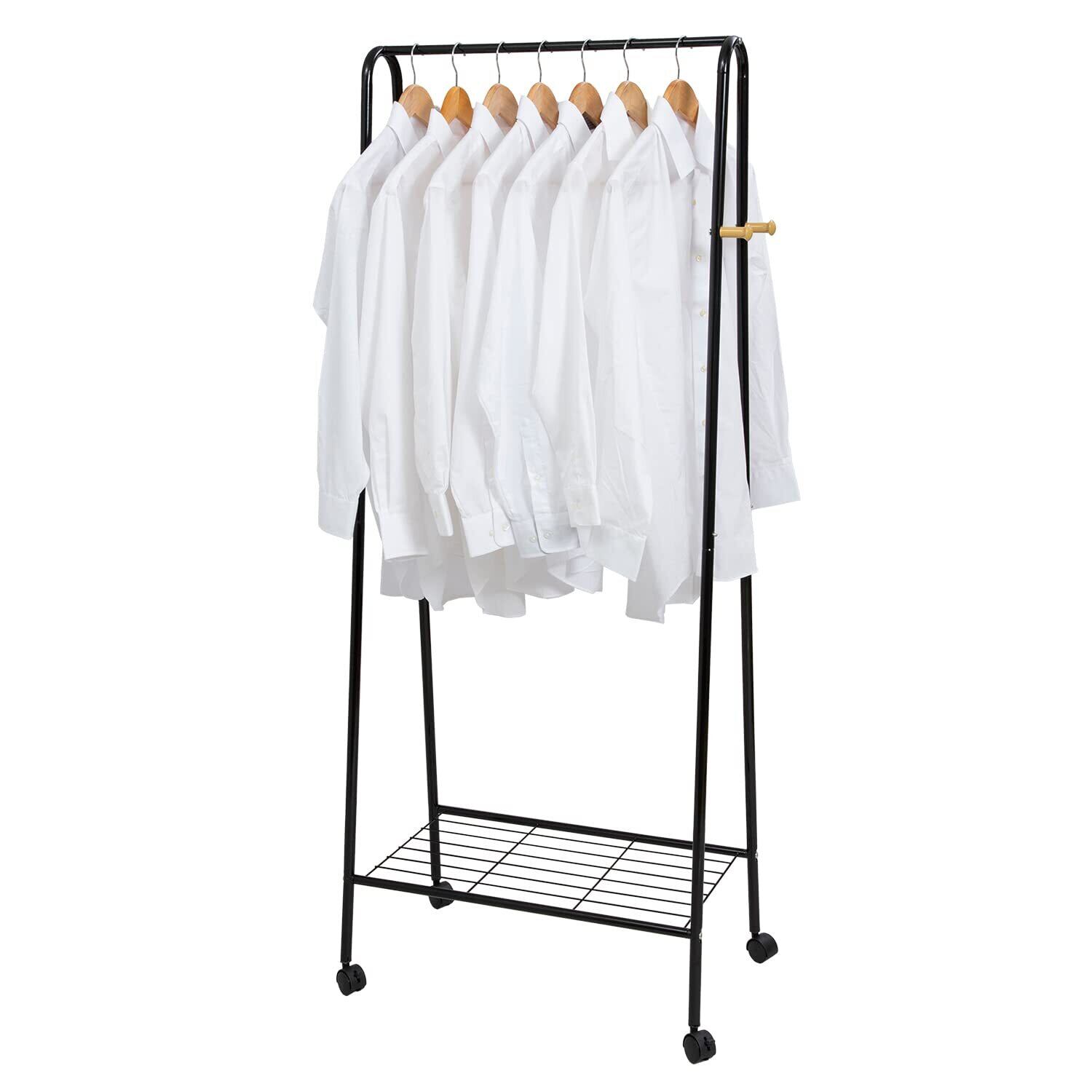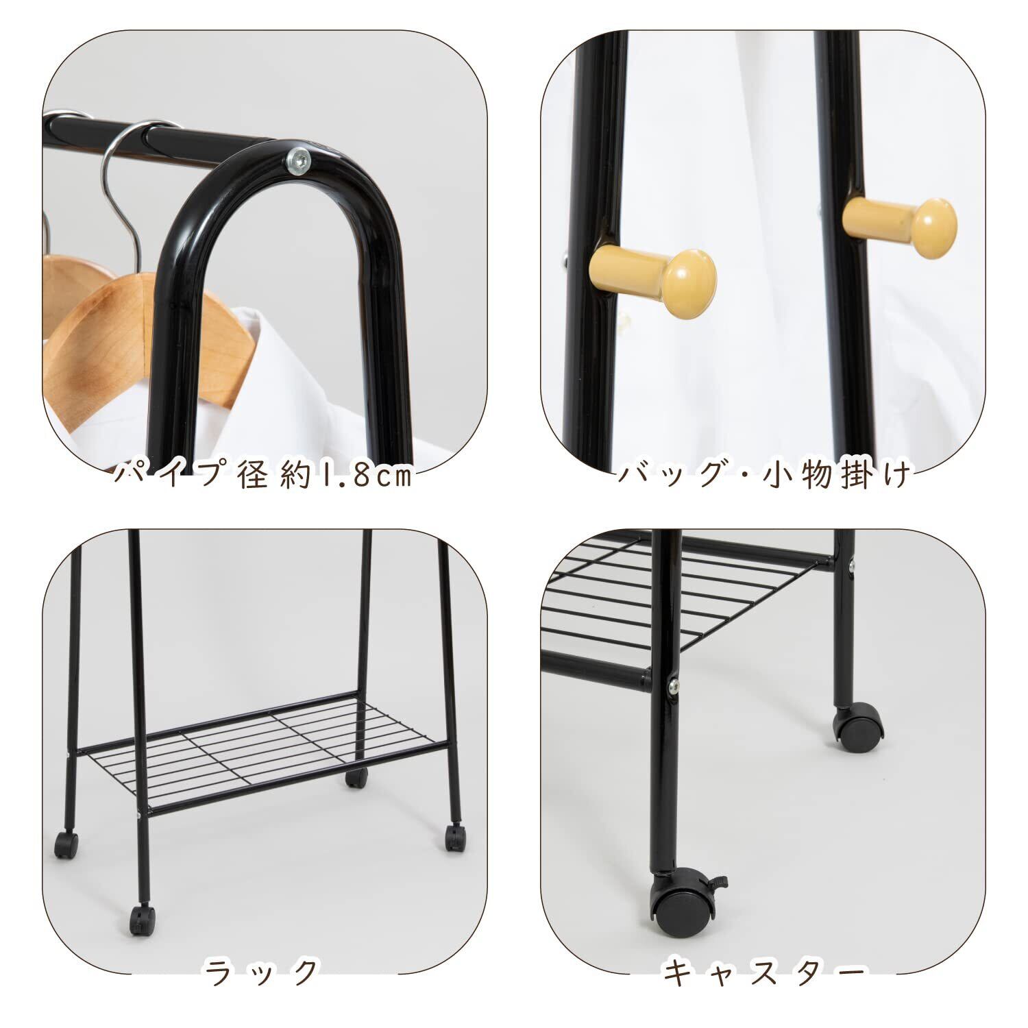 【商品仕様】:サイズ/約幅68.5×奥行45×高さ171cm、カラー/ブラック、内容/1台、材質/[本体]スチール(粉体塗装) [キャスター・フック]ポリプロピレン、耐荷重/ハンガーパイプ・ラック各5kg