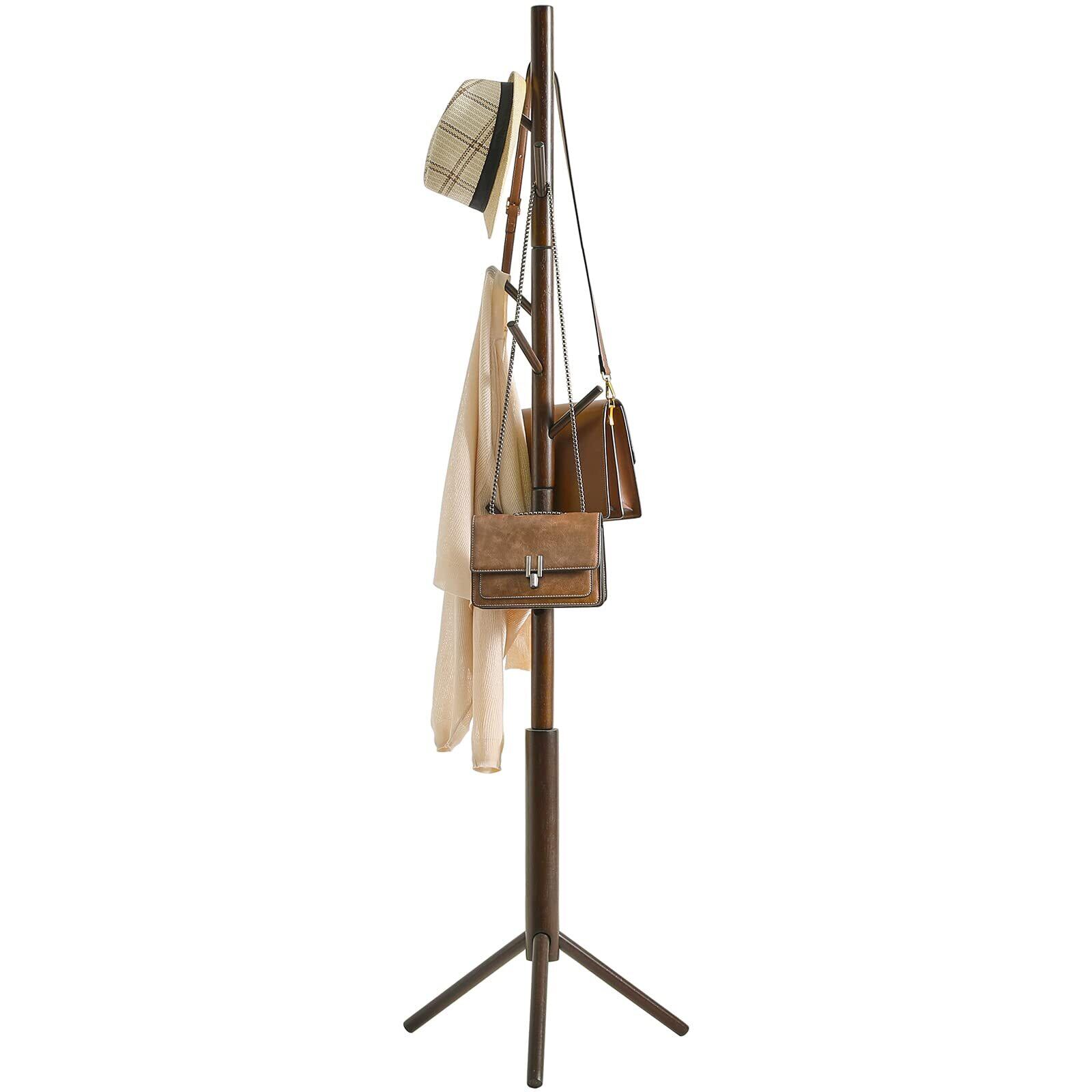 YMYNY ポールハンガー 木製 コートハンガー ハンガーハンガースタンド 8つフック 組み立て簡単 帽子 キャリーバッグ 衣服 リビング 寝室 高さ175cm ゴムウッド 茶色 JPHCR001H