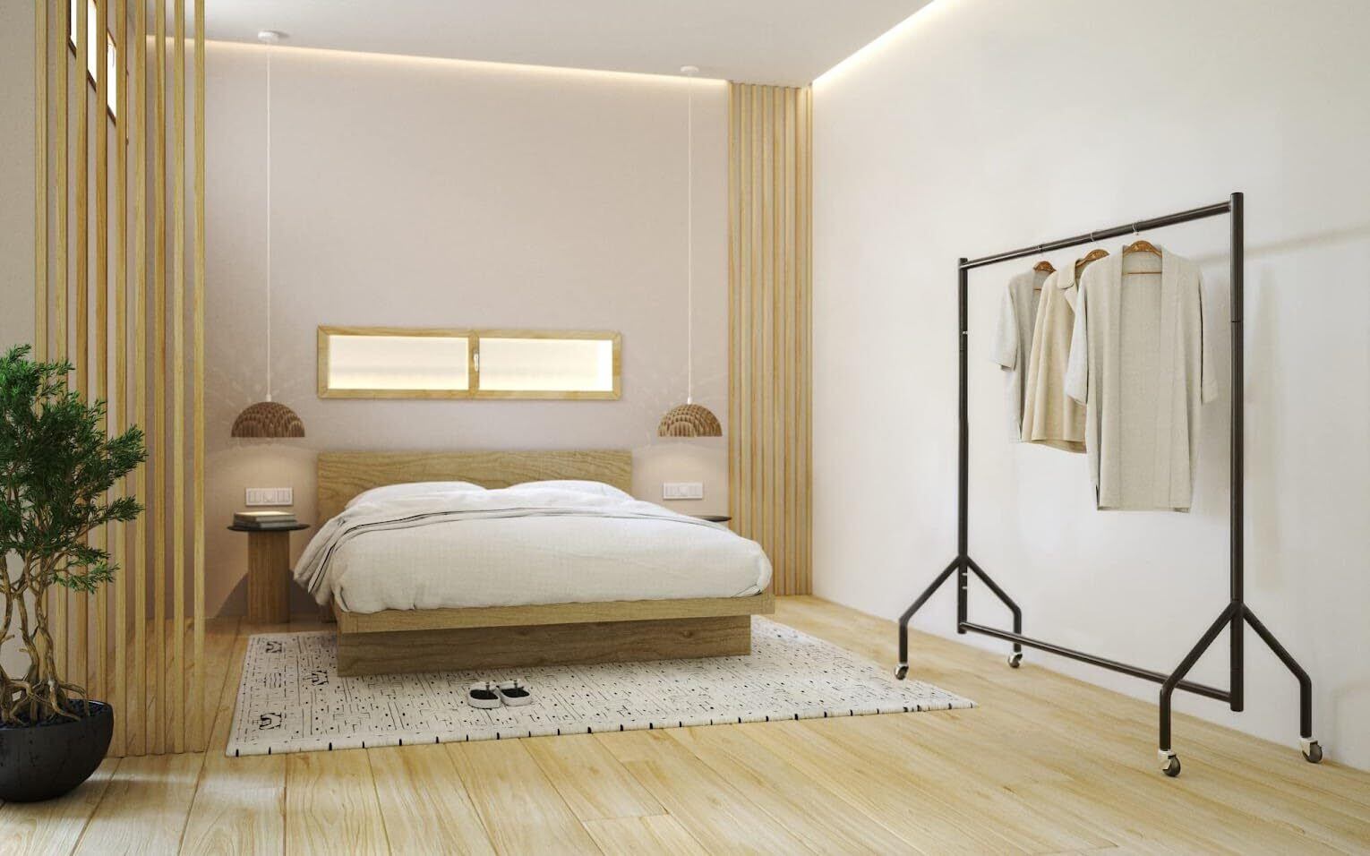 衣類を吊るして整理するのに役立つハンガーラック
