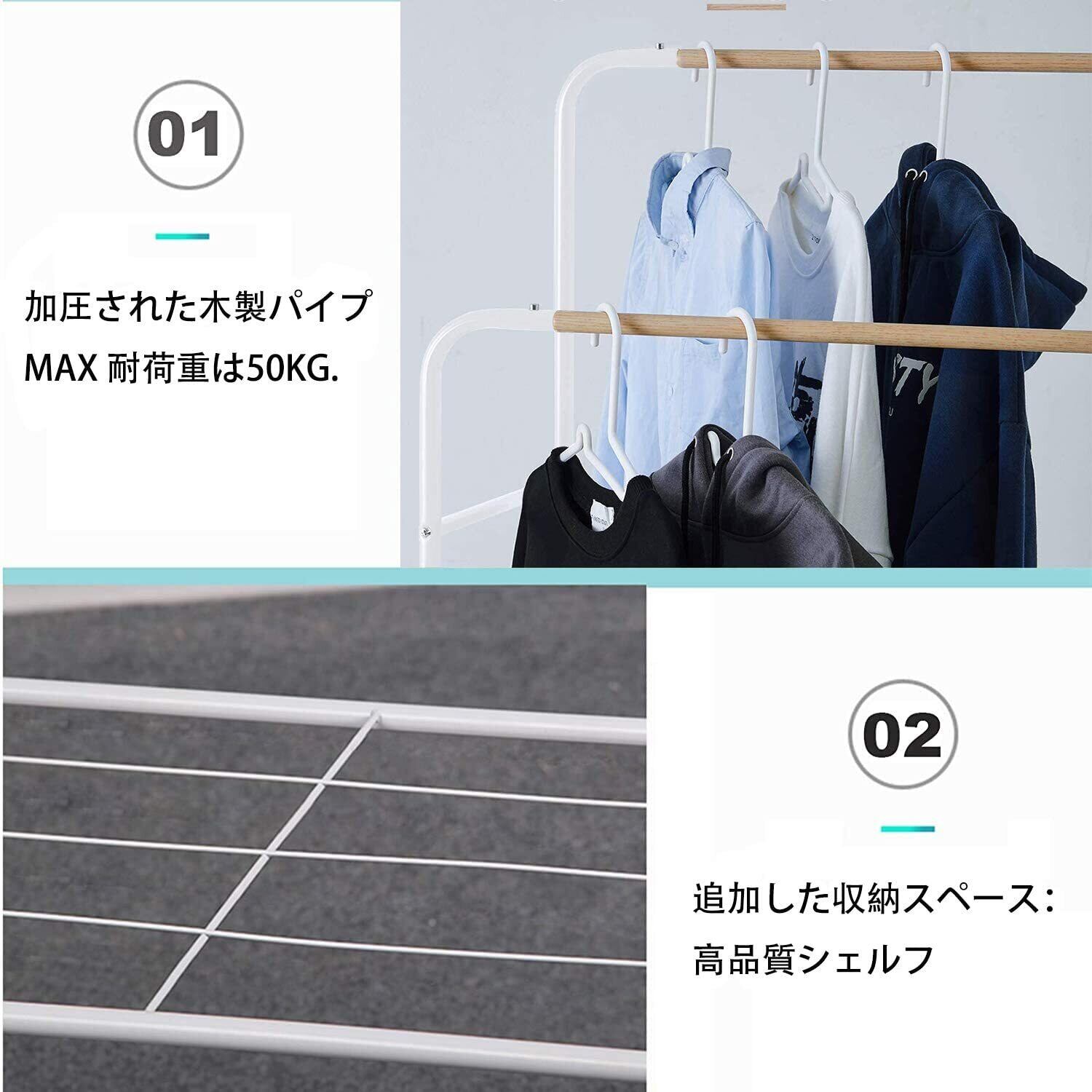 YOUDENOVA ハンガーラック 2段 パイプハンガーラック キャスター付き 物干しスタンド 洋服ハンガー 一人暮らし 大容量 コート掛け 物干しスタンド ダブル メタルラック 頑丈 省スペース 組立簡単 布団 衣類収納 室内 (82×51×155cm、ホワイト)