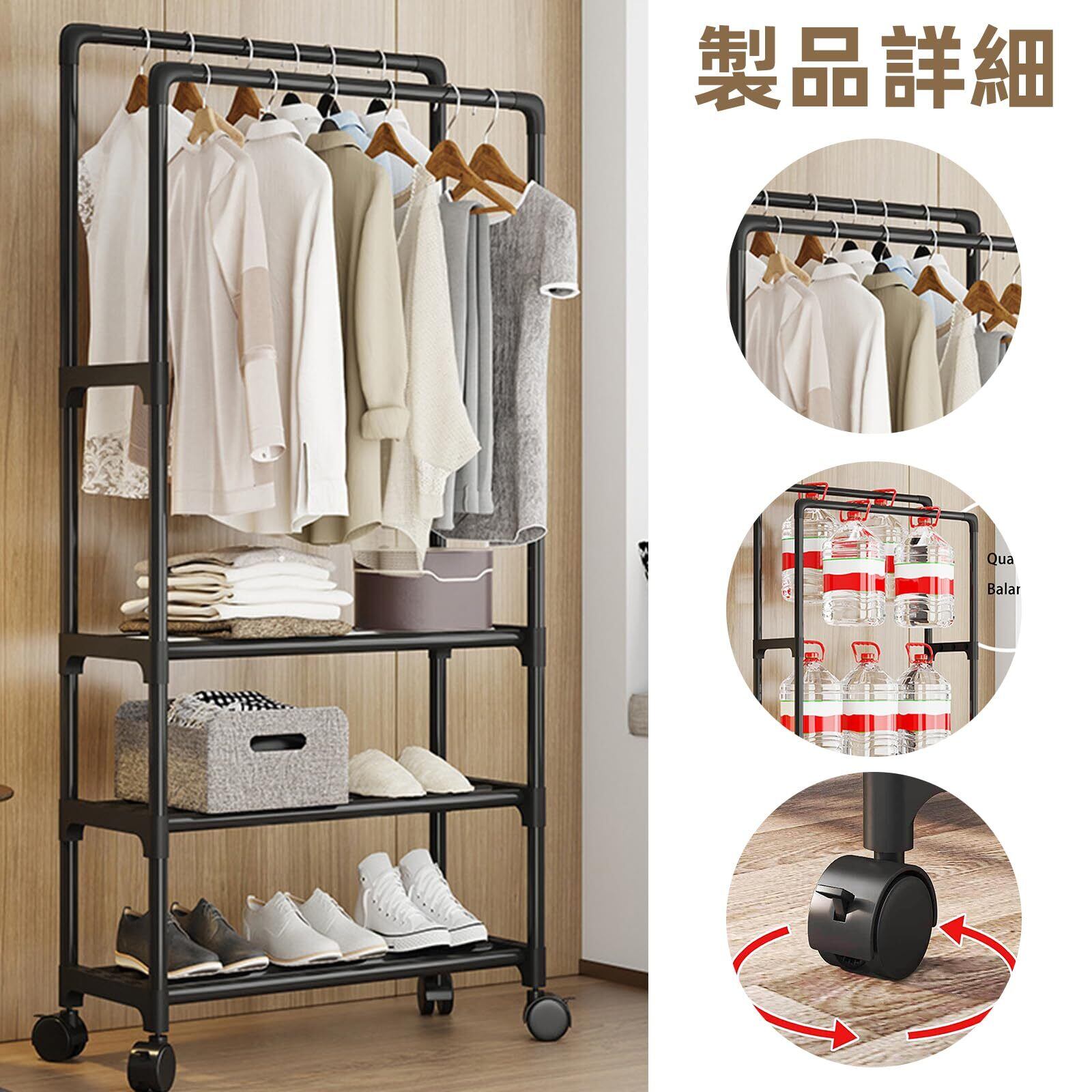 ハンガーラック 幅57.5 奥行30 高さ143cm ミニ洋服ラック 3段棚付き キャスター付き ダブルロッド 組立品 多機能 軽量型 頑丈 コンパクト 簡単組み立て おしゃれ 一人暮らし ブラック