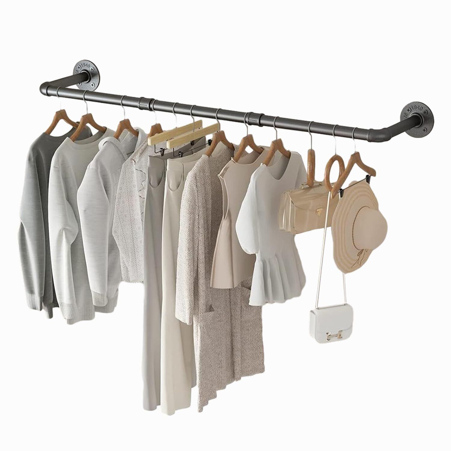 Potphieé ハンガーラック 壁掛け ハンガーパイプ 幅100cm 洋服掛け ハンガーバー 洋服ラック 壁付け アイアンバー 吊り下げ 頑丈 見せる収納 DIY