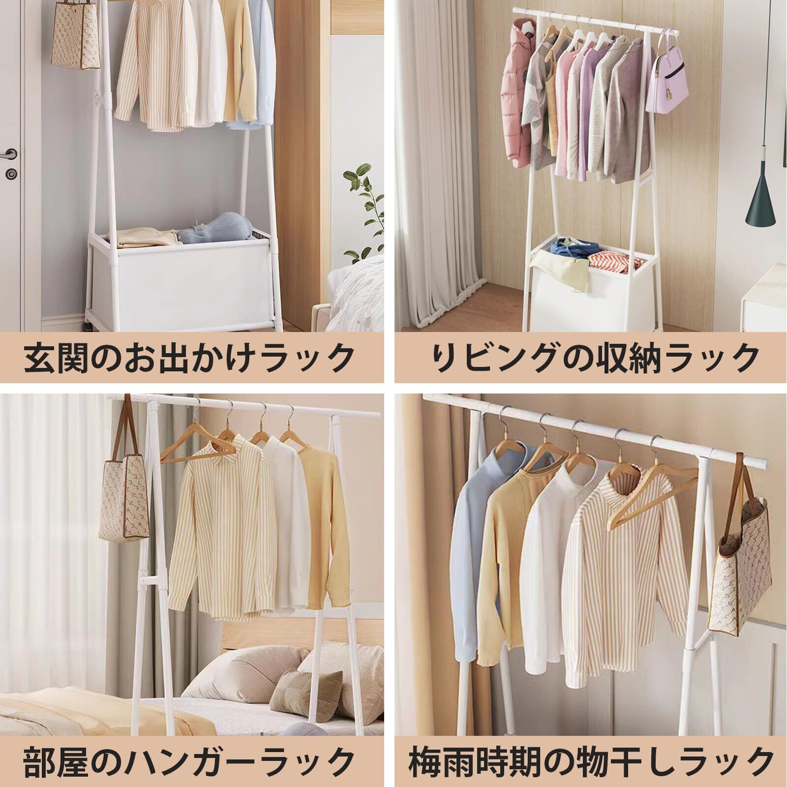 【使用場合はいろいろ】ハンガーラックはコートや洋服などを掛けるかける、帽子やカバンなどをかけるとおける三つの機能を備えています。りビングや寝室や子供部屋でお気楽に服の収納以外に、部屋干しのアイテムとして梅雨時期の物干しとしても活躍します。ご使用目的に合わせて自由に設定できます。
