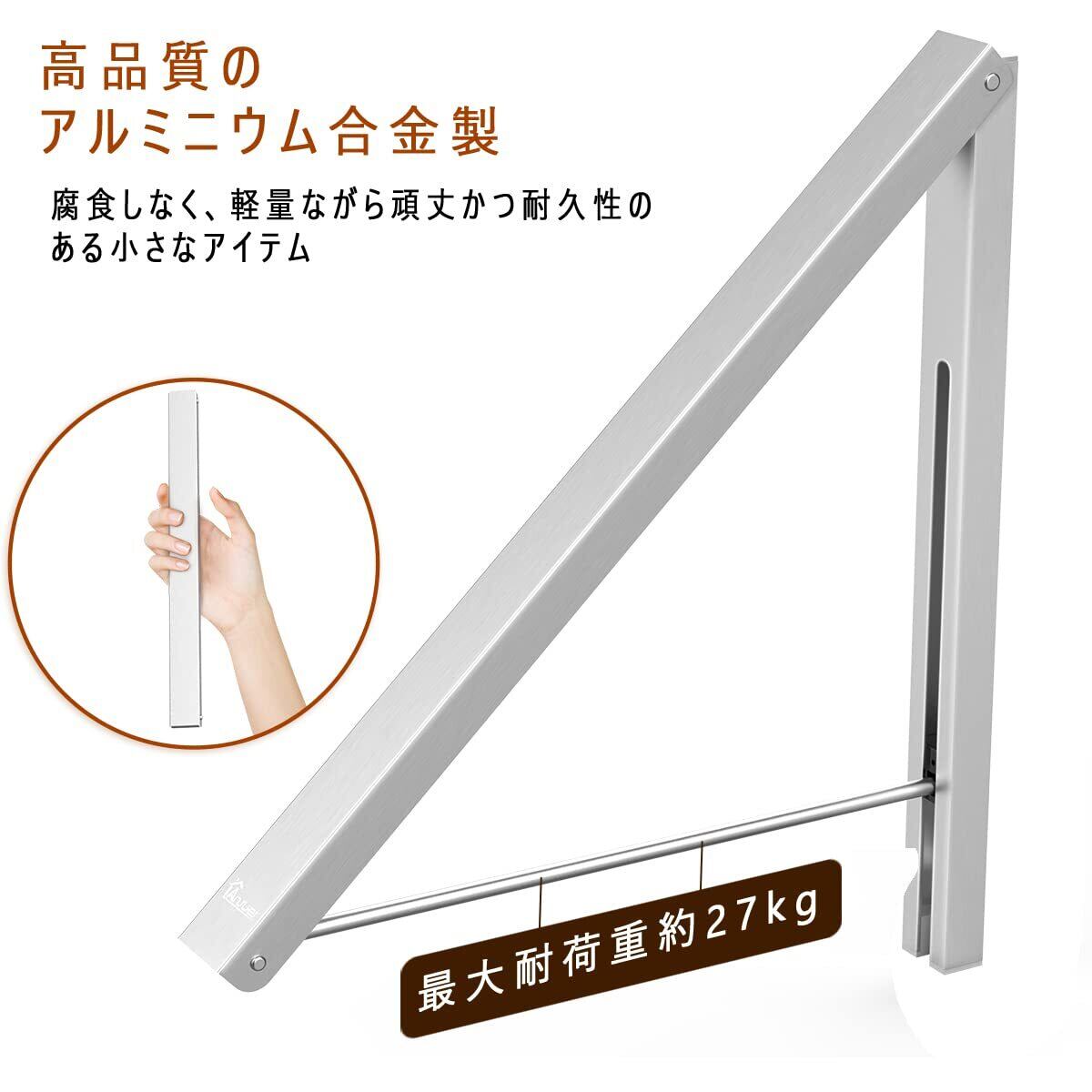 Anjuer 折り畳みハンガーラック ウォールハンガー 壁取り付け式コートラック 服掛けラック タオル掛け 壁掛けラック 寝室/浴室/オフィス/玄関/ベランダ 物干し 軽量 アルミニウム合金製 シルバー