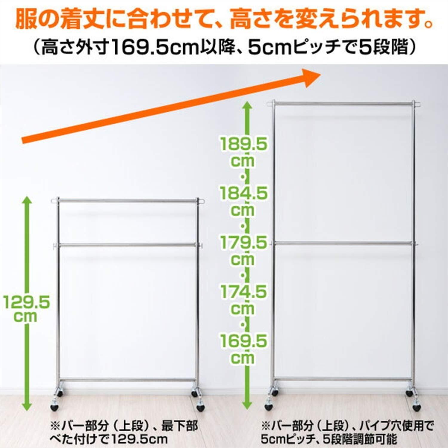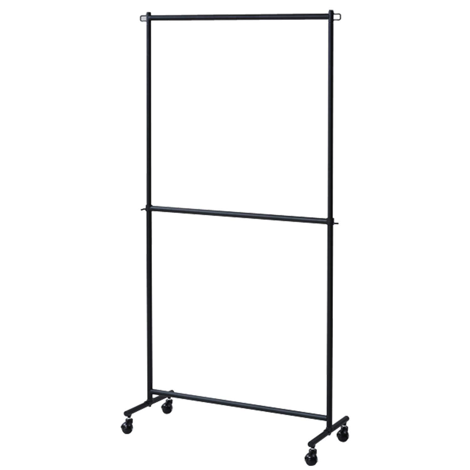 [山善] ハンガーラック 頑丈 耐荷重120kg 2段 高さ伸縮 キャスター付き 96×41×130-190cm マットブラック YIH-2S(MBK)