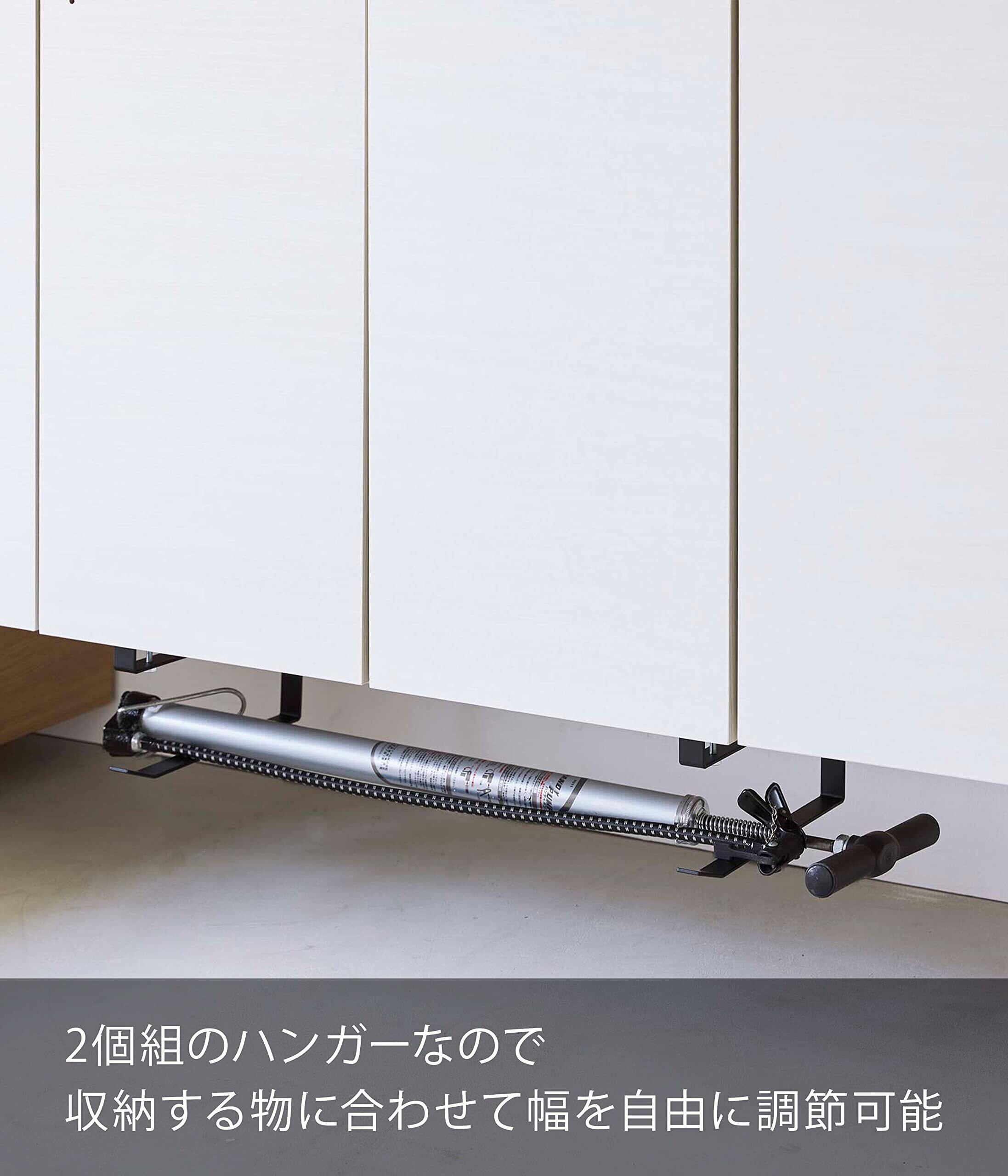 玄関の下駄箱の棚下に差し込むだけ! 置き場所に困る掃除道具を浮かせて収納できるハンガー2個組。