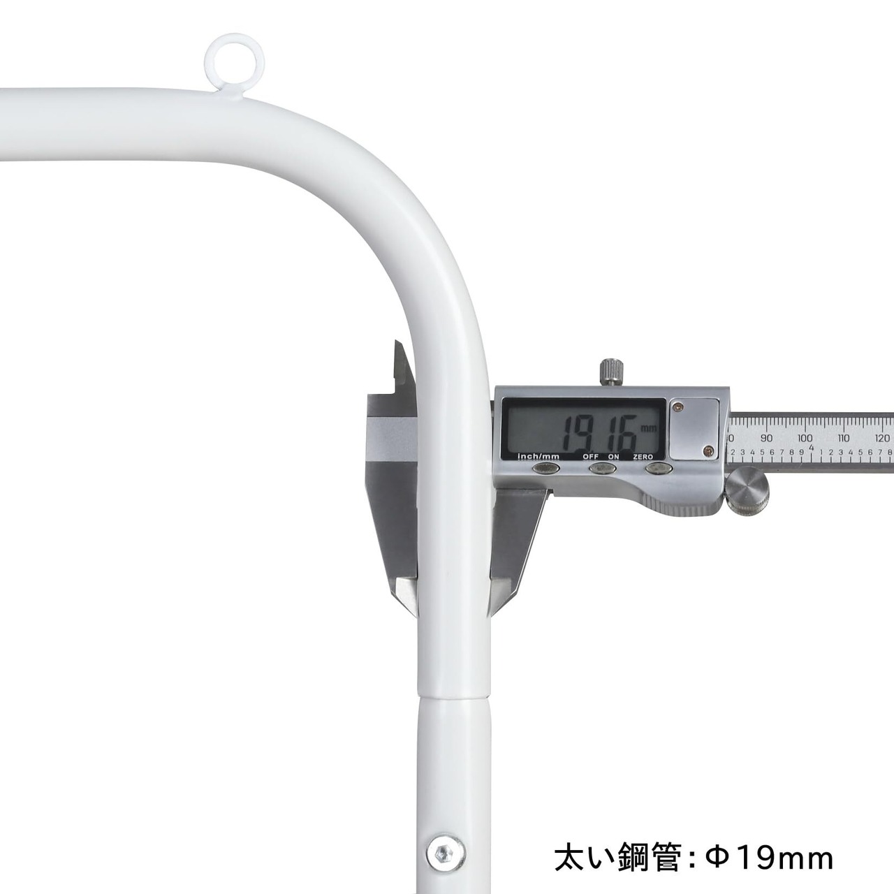 【高強度高耐荷重】頑丈なスチール製ハンガーラック、強度に強く、全体耐荷重45kgで重めのコートなどを掛けても安心です。特殊な塗装で加工され、錆びにくいです。