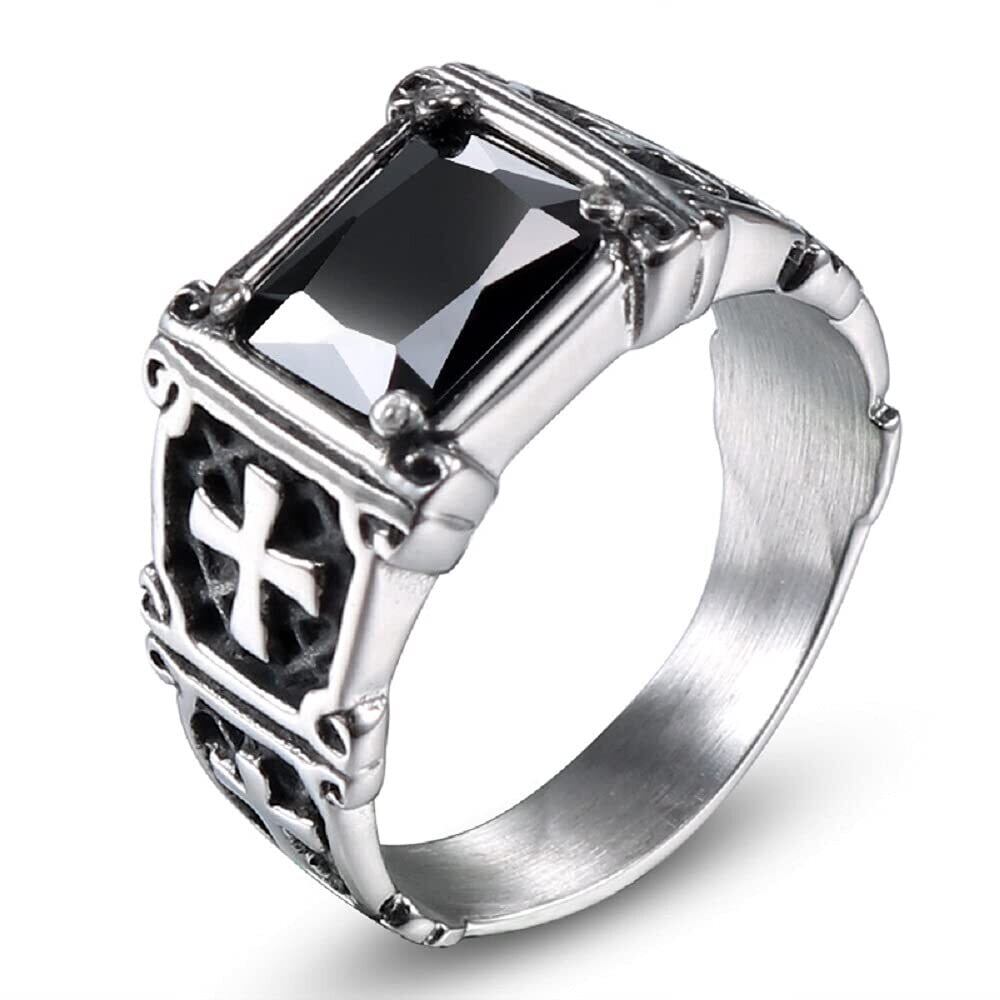 [Rockyu] 指輪 メンズ 黒 ブラック ジルコニア オニキスリング ステンレス 十字架 クロス指輪 厄除け お守りリング 指輪物語 印台指輪 ファッショアクセサリー