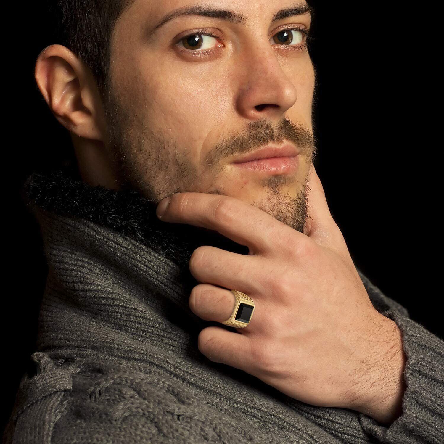 Flogno メンズ リング 指輪 ステンレス 結婚 ガラス石 両手 親指でも 覇気 シンプル クラシック 学生 男の子 質感 かっこいい 彼氏 父 父の日 誕生日 記念日 バレンタインデー クリスマス プレゼント ギフト 「ゴールド」 米国8号=日本16号