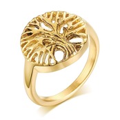 [Rockyu] ブランド ステンレス レディース 指輪 ゴールド 命の木 生命の樹 印台指輪 16号 ニューヨークスタイル 誕生日 人気 ギフト