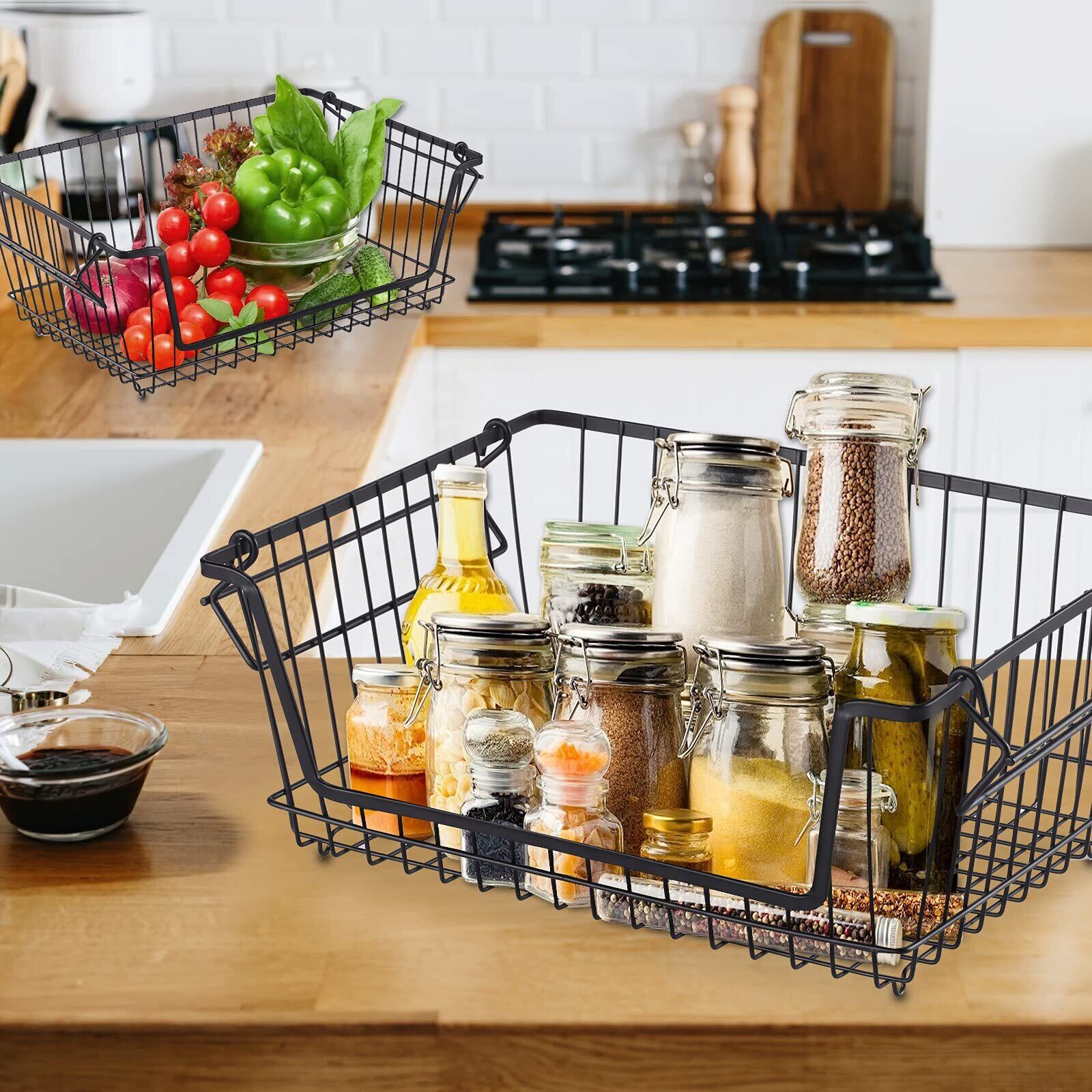Dopool バスケット ワイヤー 2個組 カゴ 積み重ね 大容量 タッキング キッチン収納 収納ケース 台所用 洗面所用 4足付き 取っ手付き 北欧風 おしゃれ 北欧 ブラック