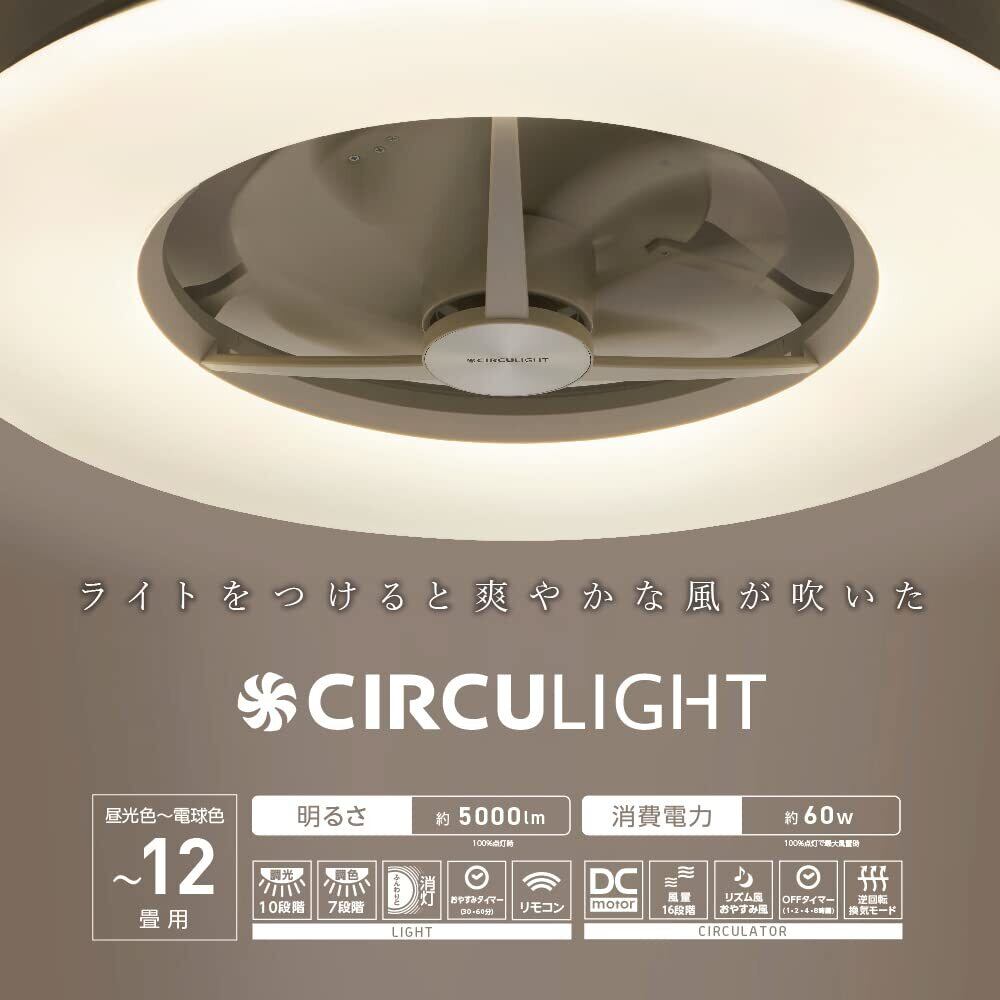 【風の出る照明】ドウシシャ サーキュライト シーリングシリーズ シーリングファン 12畳 LED 調光調色タイプ