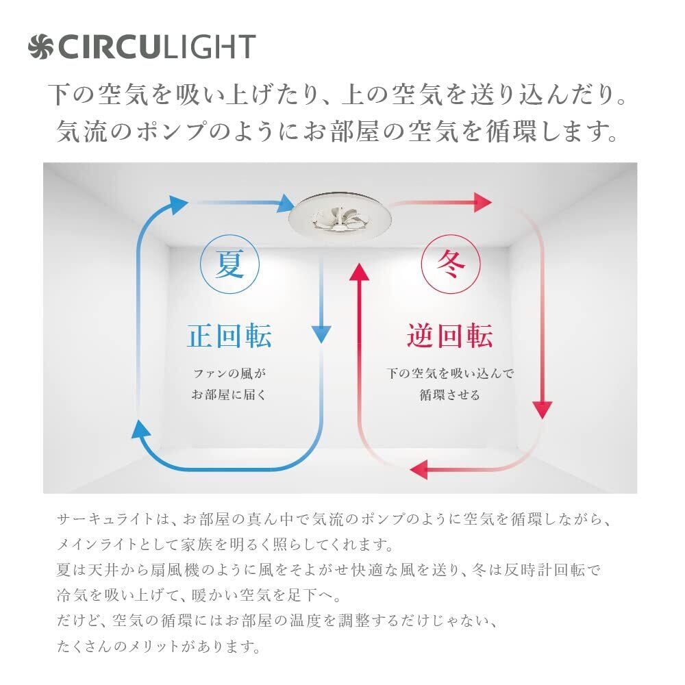 サーキュライトは「ライト」と「サーキュレーター」を組み合わせたシーリングファンライトです。天井に設置する事で循環効率がアップし、足元に置かないので邪魔にならず小さなお子様やペットがいるご家庭におすすめです。