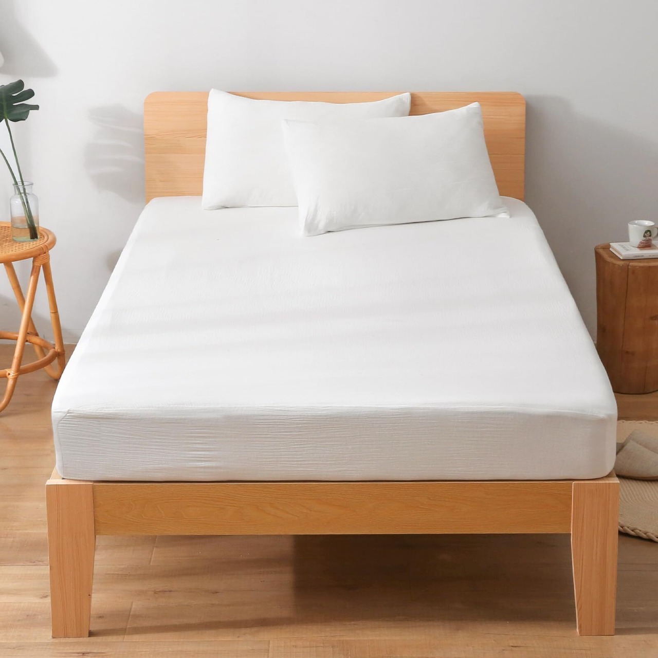 SE ボックスシーツ シングル 綿100% ガーゼ ベッドシーツ マットレス/ベッド/敷き布団カバー 柔らかい 吸湿通気 抗菌·防ダニ 全周ゴム付き ずれない 洗える オールシーズン (100X200cm・ホワイト) 「SE Softexly」