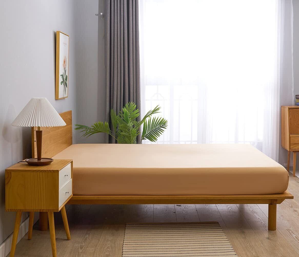 ボックスシーツ セミシングル 80×200x30cm 綿100% ベッドシーツ SS 平織り マットレスカバー ベット用 防ダニ 抗菌 BOXシーツ キャメル