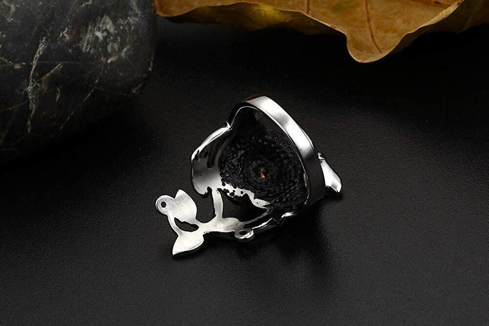 [JEWELRYWE] ハロウィン アクセサリー: メンズ リング 指輪, アンティーク風 ゴシック バラ 薔薇 ローズ, ジルコニア ダイヤ, ステンレス, カラー:シルバー(銀);[ギフトバッグを提供]