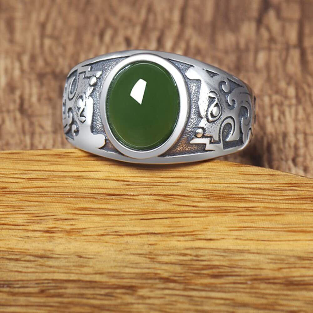 【Rockyu 指輪】フリーサイズ指輪 人気 おしゃれ ジュエリー指輪 グリーン宝石 メンズリング