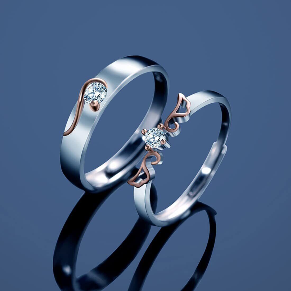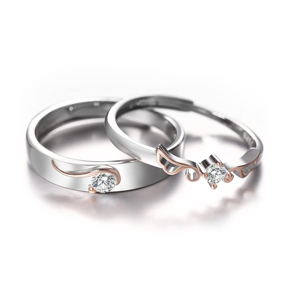 [Rockyu] リング メンズ フリーサイズ ペアリング カップル シルバー ピンクゴールド 天使の翼 愛のリング 大粒 czダイヤ キラキラ S925 結婚指輪 仕上げ アレルギー対応 欧米風 アクセサリー