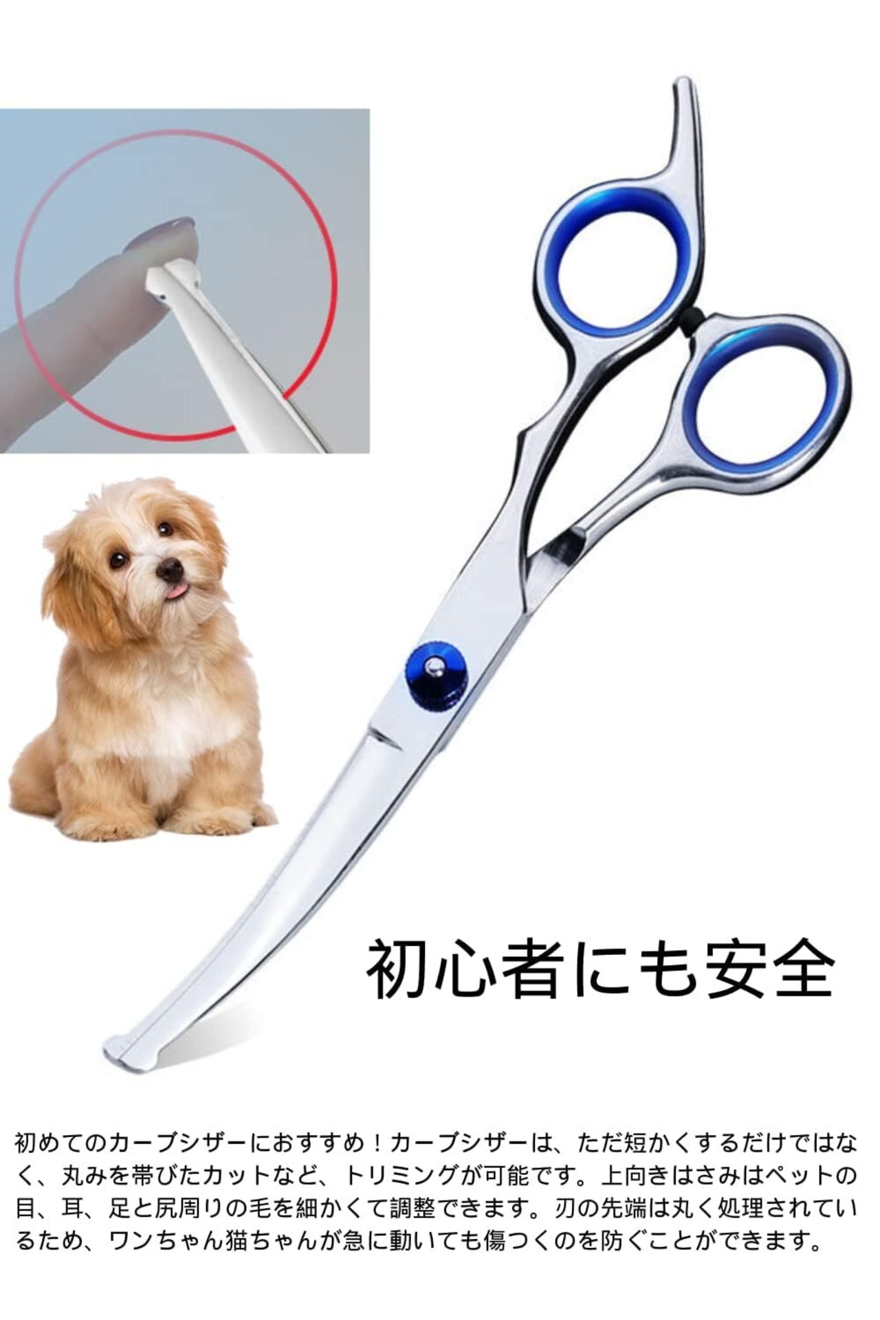 【初心者も安心】初めての方におすすめのカーブシザー!短くするだけでなく、カーブトリミングもできるカーブシザー。上向きのハサミなので、ペットの目・耳・足・おしり周りの毛を細かく調整できます。刃の前面は丸みを帯びた仕上げになっているので、愛犬・愛猫が急に動いても傷がつきません。