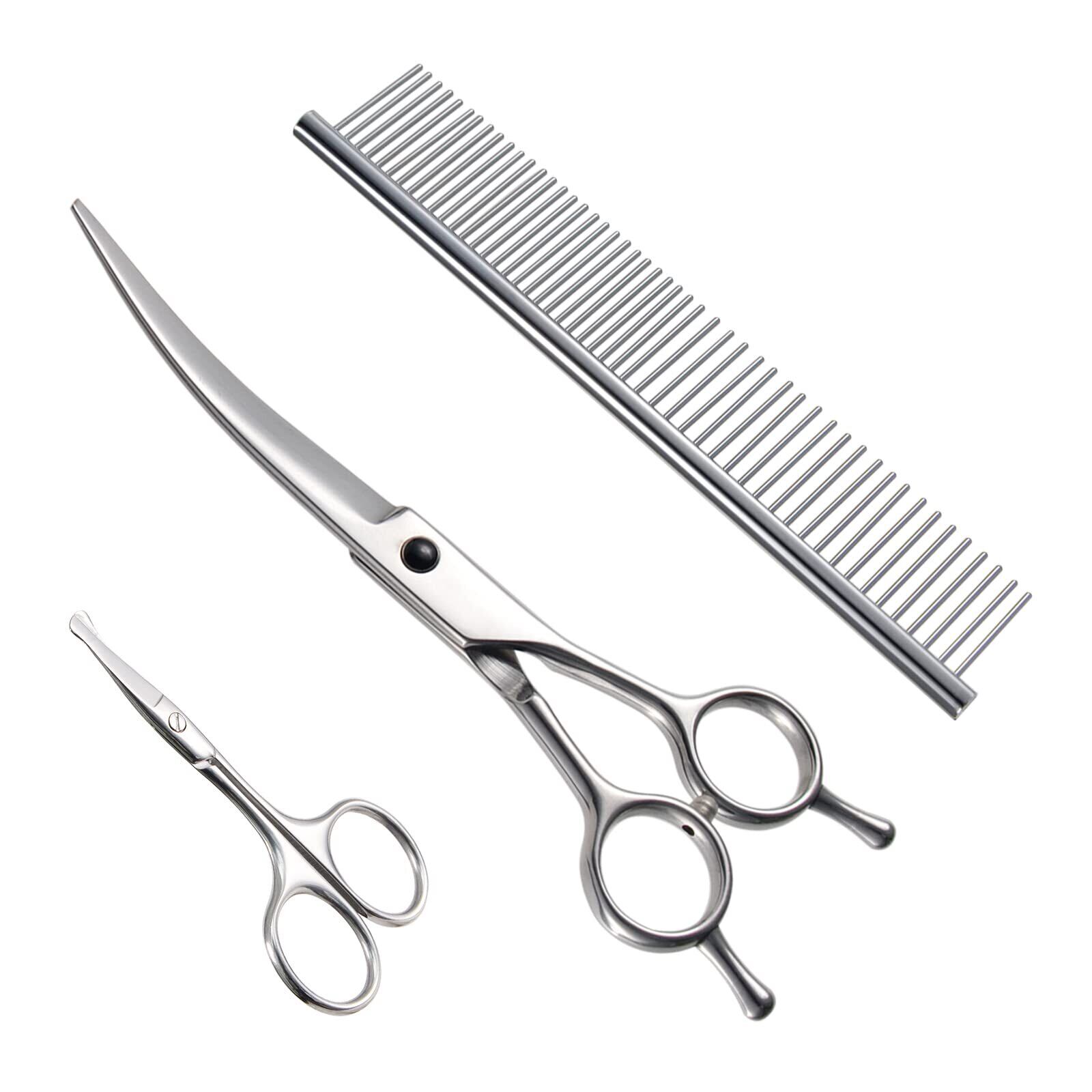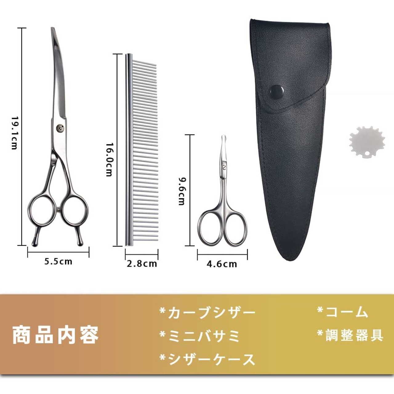 LESNIC トリミングシザー カーブシザー コーム ミニハサミ 猫 犬 トリミング ハサミ ペット はさみ 鋏 簡単 安全 ペット用シザー カーブバサミ (ハサミケース付き)