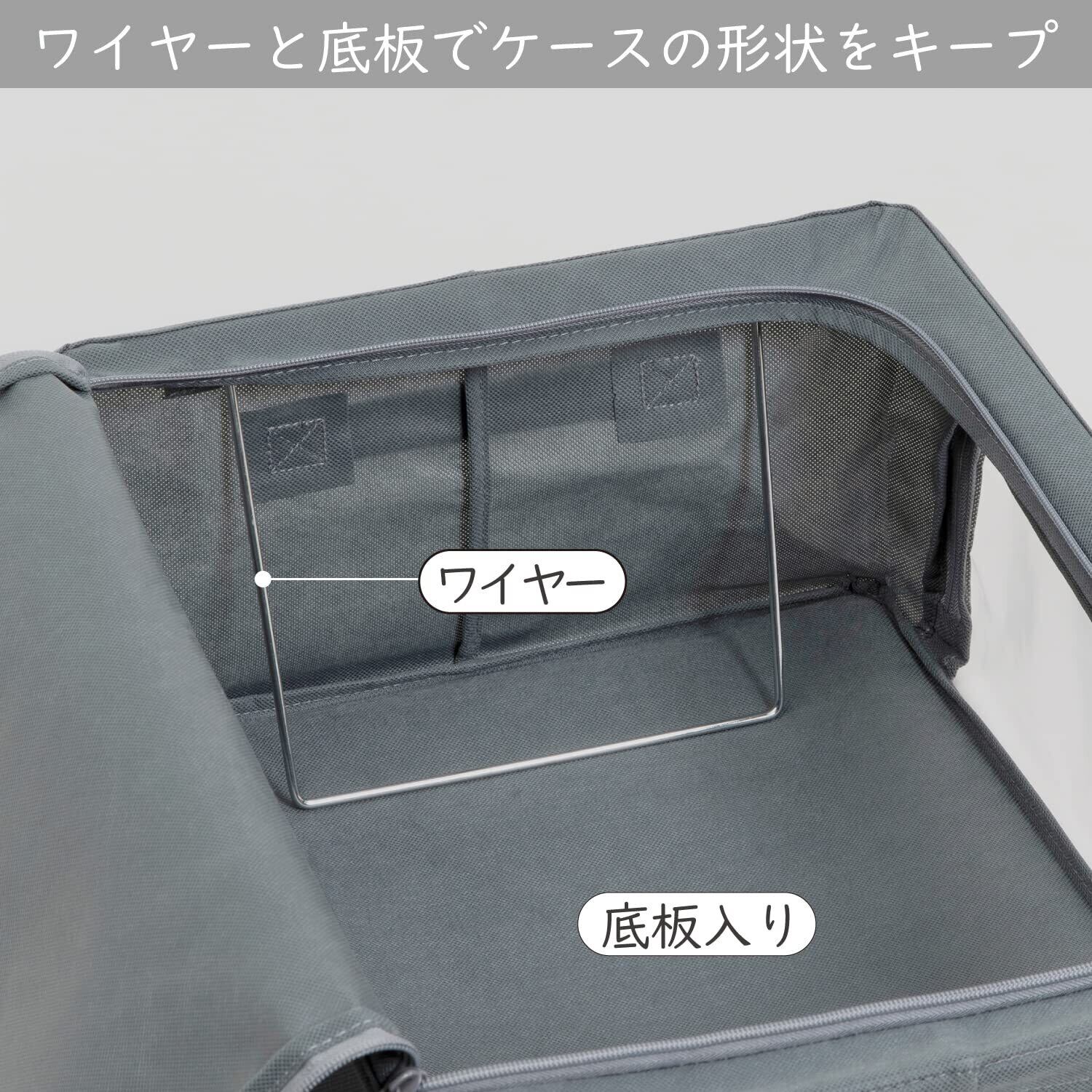 【ワイヤータイプ】:ワイヤーと底板でケースの形状をしっかりキープ。積み重ねて収納できます。使わないときはワイヤーを折りたたんでスリムに収納。