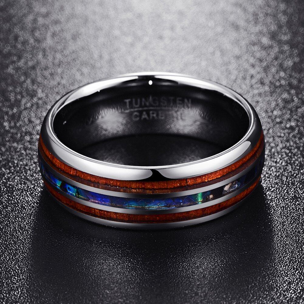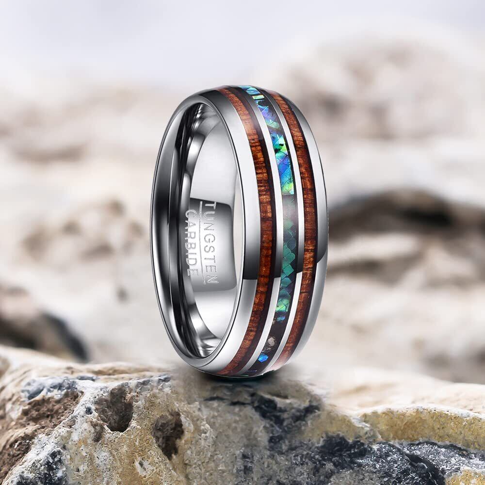 【商品仕様】素材:タングステン、アワビシェル、ハワイコアウッド。幅:8mm(サイズはご案内図に参考してください、)。