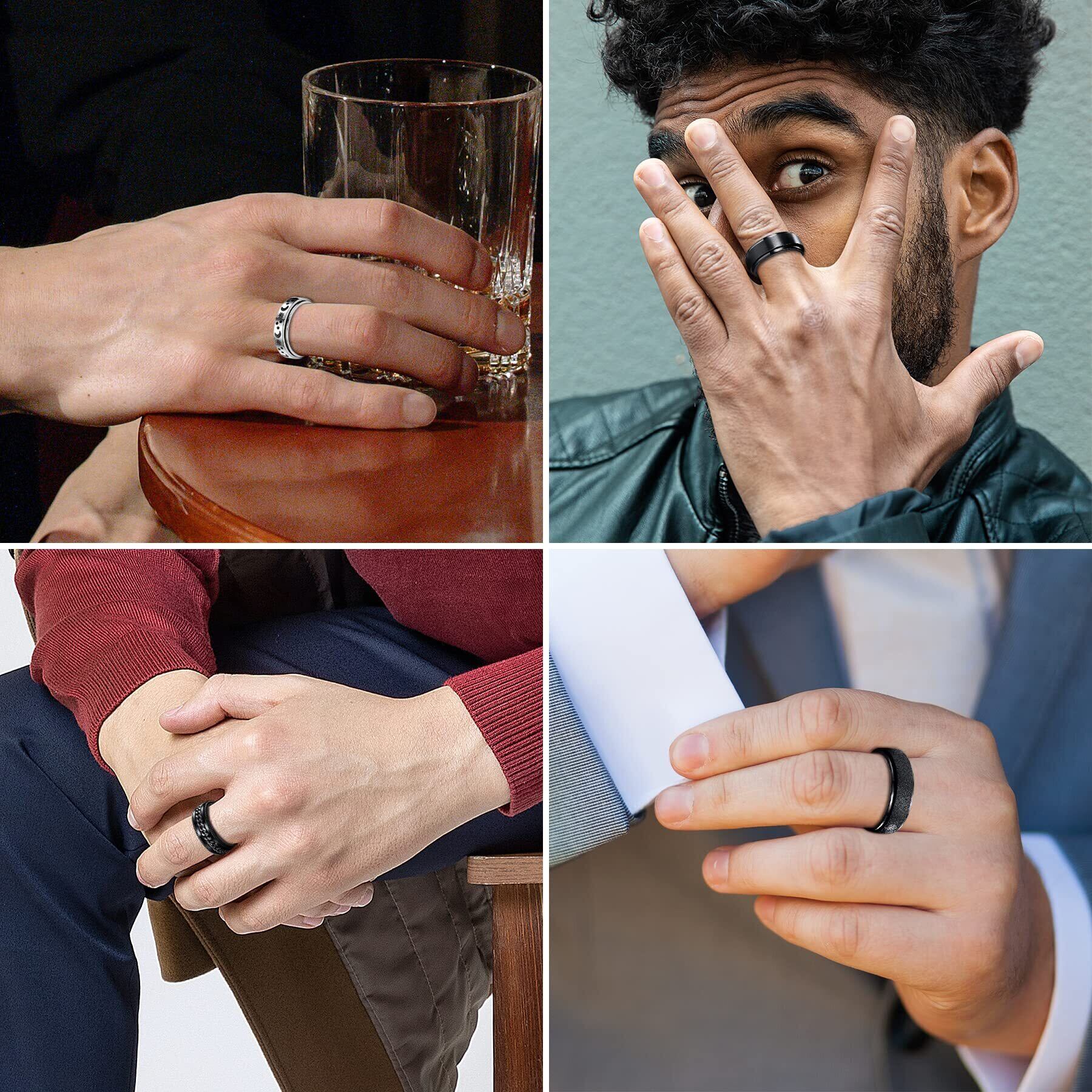 【モチーフ】甲骨文・回転・星月・麻紐などの要素が付いて、6点セットのお買い得メンズリング!