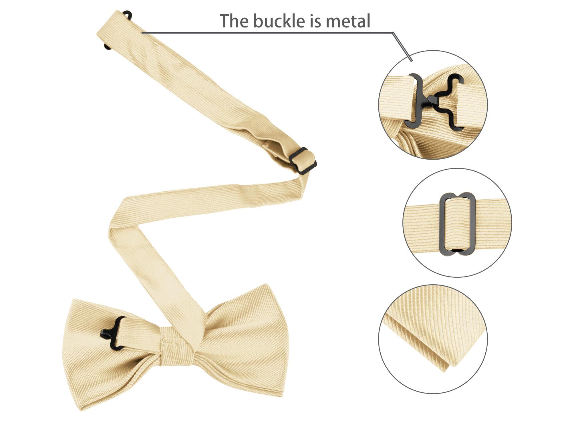 ポケットチーフ:23x23cm。蝶ネクタイ:6x11.5cm 。調節可能なネックストラップ:31-54 cm。ネクタイ:長さ:146 cm、幅:6cm