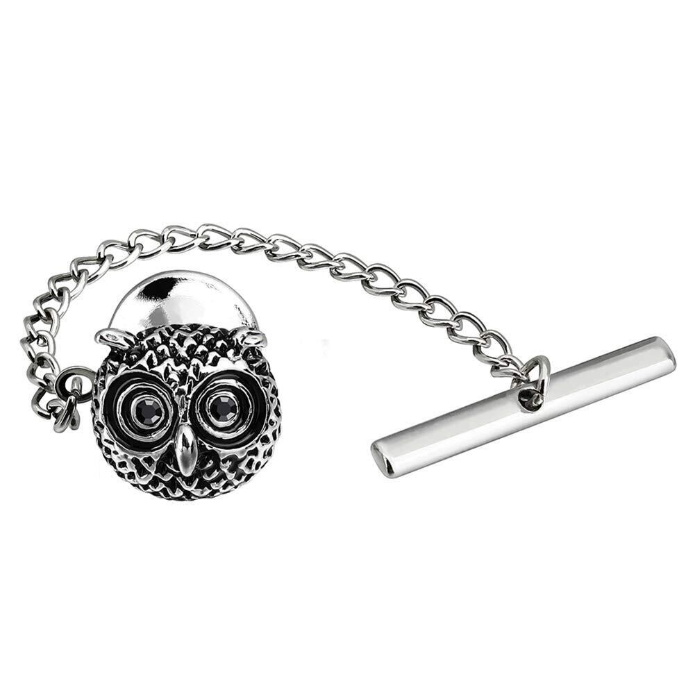 HAWSONメンズネクタイピンチェーン付き動物型ネクタイアクセサリー用ネクタイタック(フクロウヘッドタイタックピンガンカラー)