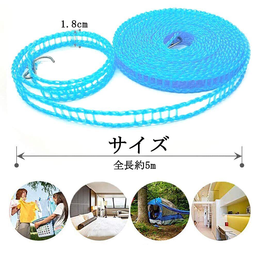 【2個入り】洗濯 物干しロープ 約5m 防風衣服乾燥ロープ 旅行物干しロープ 携帯便利 旅行 キャンプ 梅雨 部屋干し 伸縮物干し竿 ナイロン