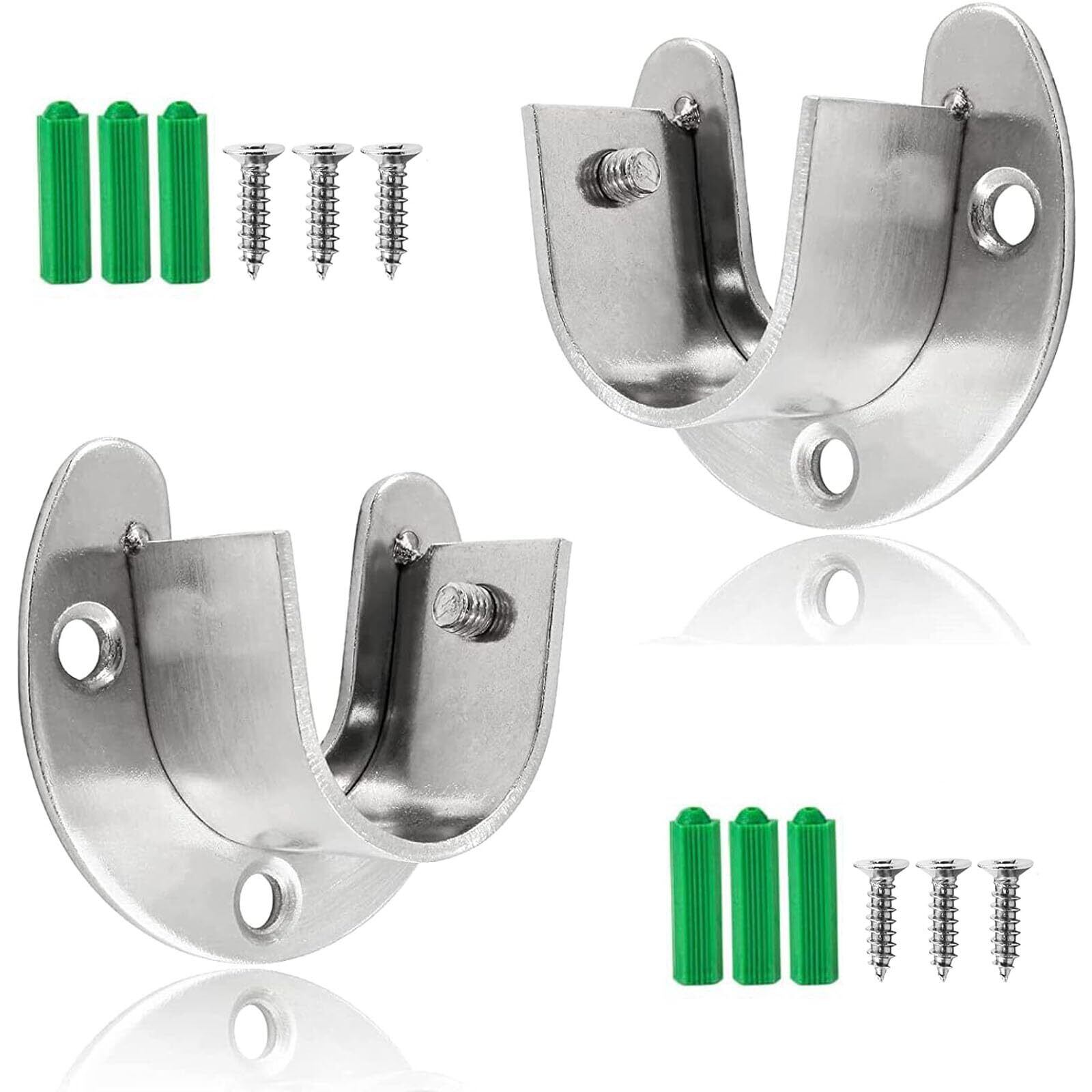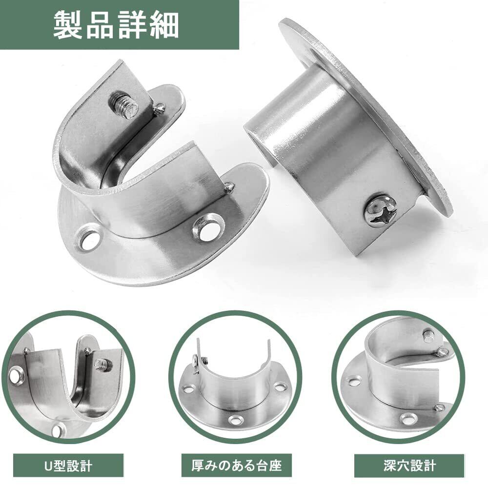 クローゼットロッドサポート ド径25MM 物干し竿 ホルダー U字型 フランジロッド ステンレス鋼 シャワーロッド ハンガーポール ねじつき インストールが簡単( 2個セット)